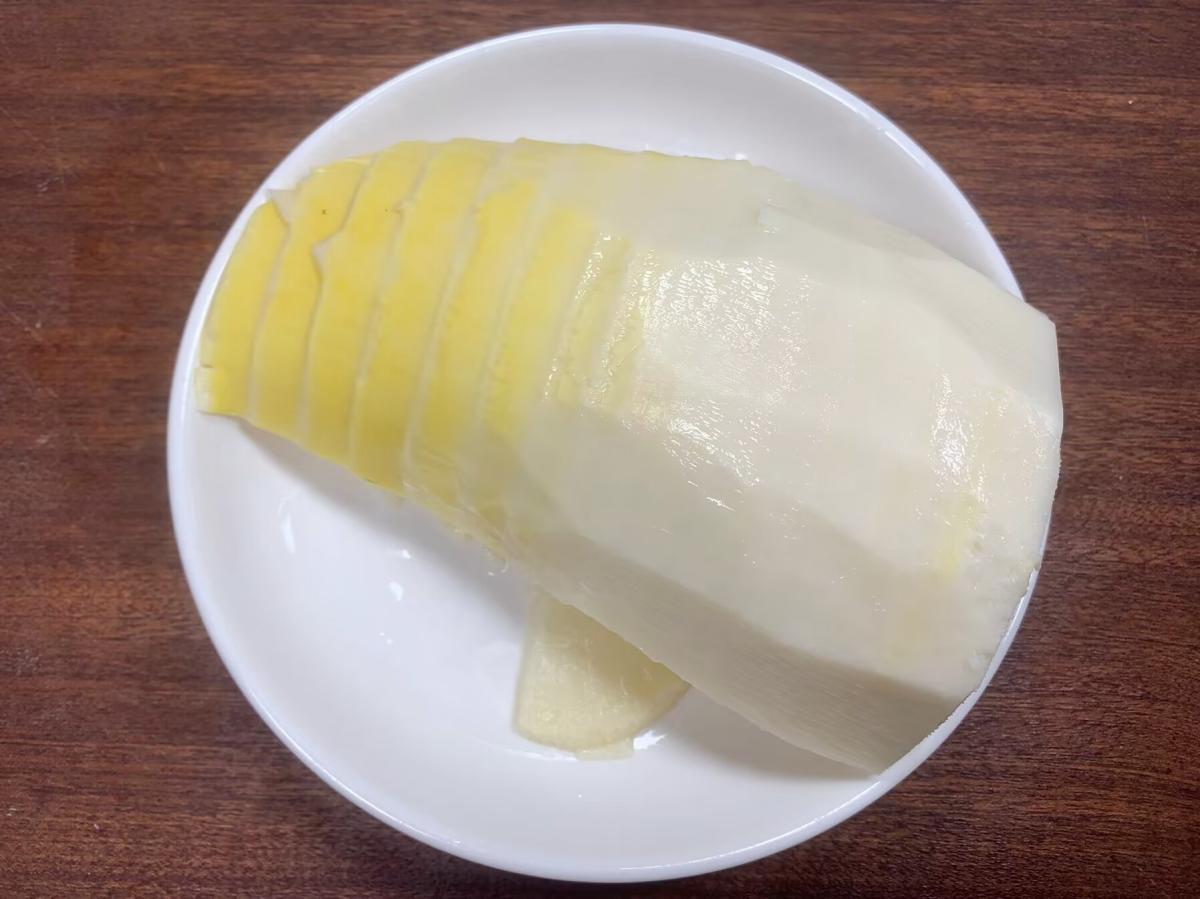 具體做法:1、冬筍有一層層的皮,先剝掉外皮,再改刀切成小顆粒狀,清洗兩遍,然後放入開水鍋中煮1分鐘,煮的時候撒少許食鹽增加底味,焯水是爲了去除裏面的草酸及苦味,增加冬筍的口感,撈出攥幹水分備用。