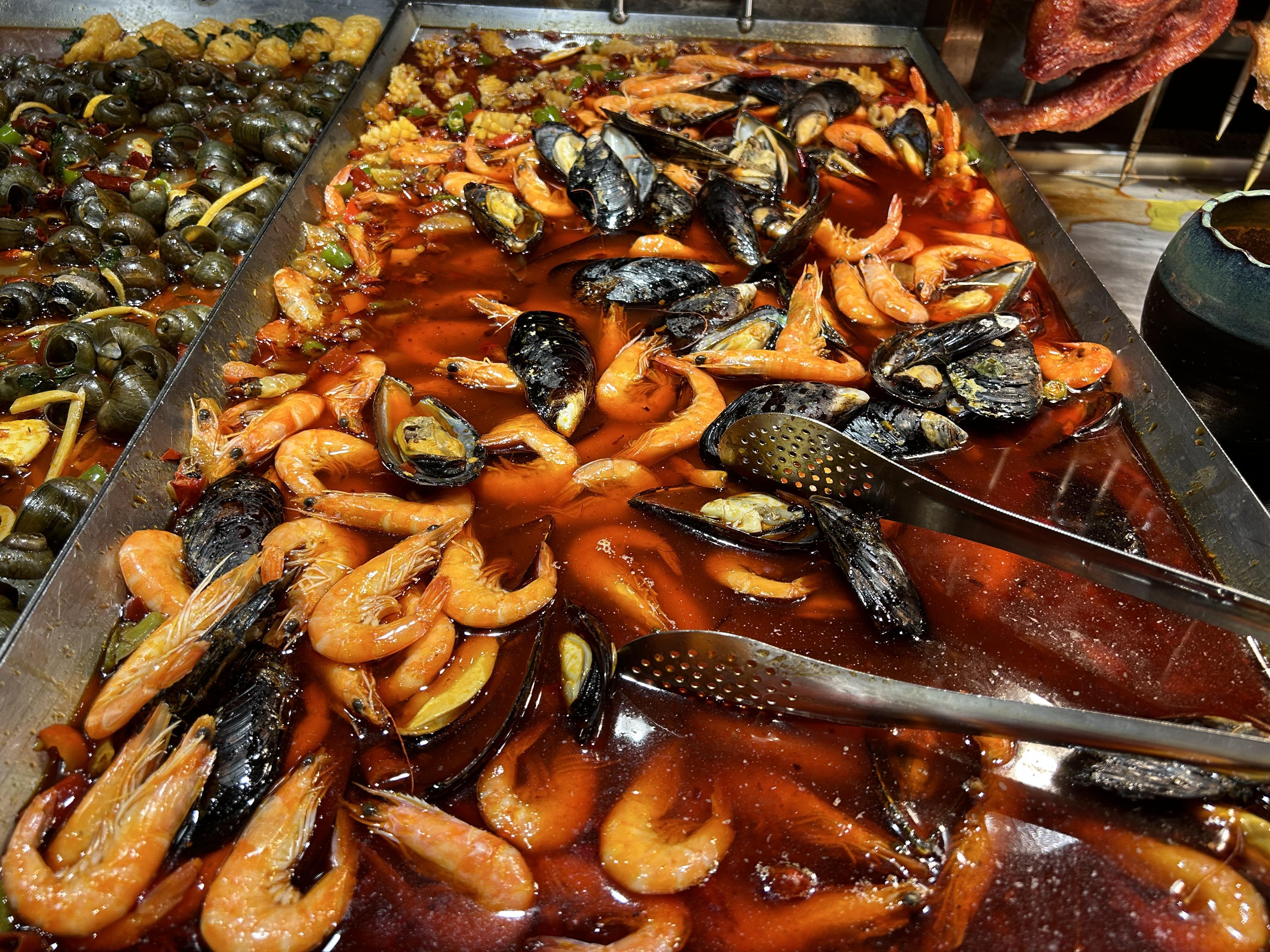 自助餐廳的的食物,很多都是很鹹的重口味,一來可以滿足大多數人的口感,二來把食物做成重口味的,可以解決食材不新鮮的問題。像冷凍的海鮮,前一天沒有用完的,廚師會做成香辣海鮮,這樣既解決了不新鮮的食材,又讓人喫不出來食材不夠新鮮的問題。