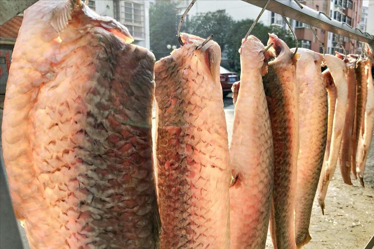 6、等3天一到,我們就可以在魚的身上綁上繩子,拿到外面去曬了,多曬幾天,十天半個月的時間,魚肉就完全曬乾啦,捏起來是硬硬的狀態,拿進來放在塑料袋裏,保存起來就可以啦。