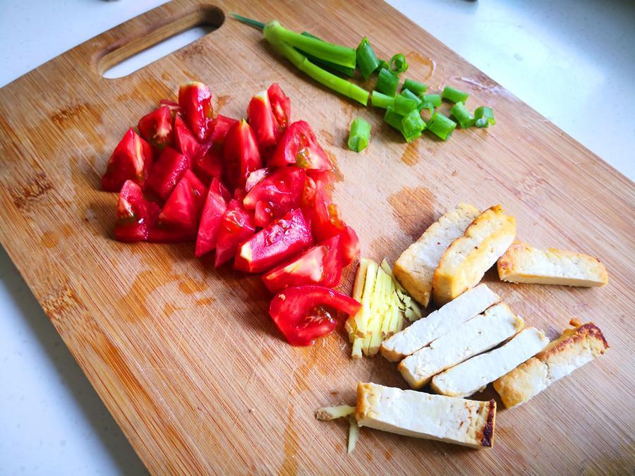 準備配料:西紅柿切小塊、香菜切段、豆腐切片後下鍋煎一煎,然後盛出備用。再準備適量的蔥花、蒜末和薑末。配菜根據自己的喜好,可以加西紅柿和豆腐,也可以加洋蔥、胡蘿蔔或者蘑菇,總之,就是爲了增加燉魚的豐富口感。
