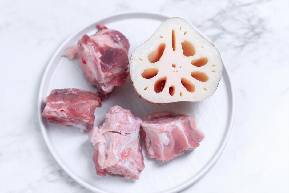 2、泡好後的排骨,才能將其清洗一下,然後放到鍋子裏,加上料酒、薑片、蔥段進行焯水,焯水後撈出來,沖洗乾淨備用。接下來,再將蓮藕準備好,燉蓮藕湯的話,要選用7孔蓮藕,口感粉糯,湯汁濃白,還會回甘,這是第一個妙招。