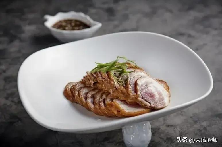 3、大火煮開後轉小火燉1個小時,撇掉煮出的浮沫,等到能用筷子扎穿後關火,浸泡至涼透,撈出切成薄片,放在盤子裏,調一碗料汁蘸着喫即可。