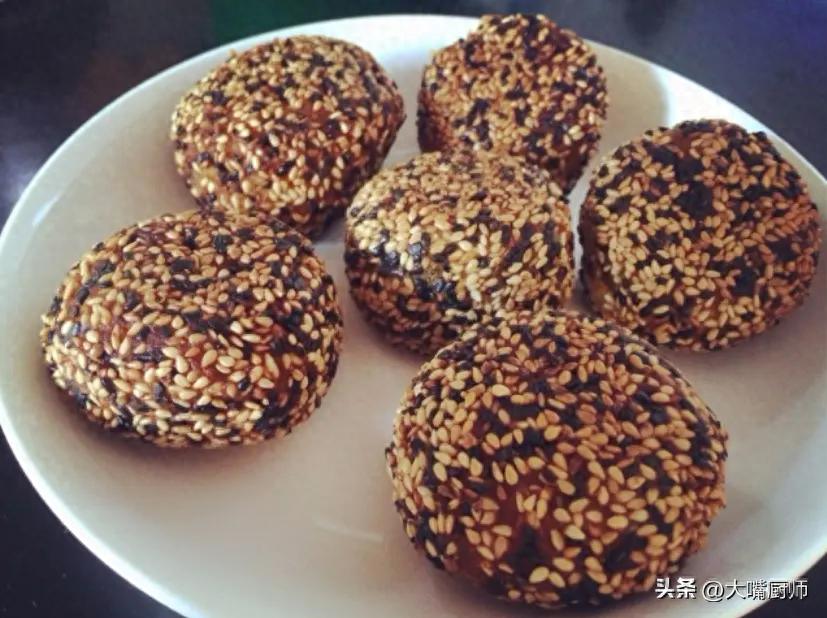 2、加入適量白糖、蜂蜜,倒入一些糯米粉,下手揉成一個光滑柔軟的麪糰。把麪糰分成小份,用手搓成小圓球,放進生芝麻裏滾一圈,粘上芝麻後再用手揉圓。