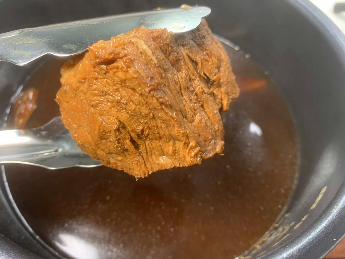 3、喫不完的牛肉可以澆上一些湯汁,塑封起來保存,放1個月不會壞。