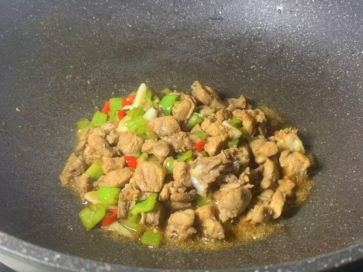 將煎好的鴨肉放入炒好的青椒中,繼續翻炒均勻。加入適量的生抽、料酒、食鹽,炒勻至收汁。撒入蔥花,淋入雞精,出鍋即可。這道鴨肉炒青椒不僅簡單易操作,而且色香味俱佳,既保留了鴨肉的鮮嫩口感,又增添了青椒的清爽口感,是冬季餐桌上的美味選擇。