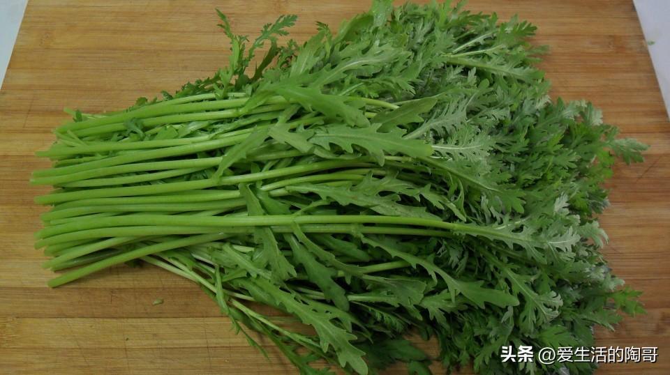 做法:1新鮮茼蒿擇一下,去掉老葉,掰幾段,沖洗乾淨,瀝乾水分