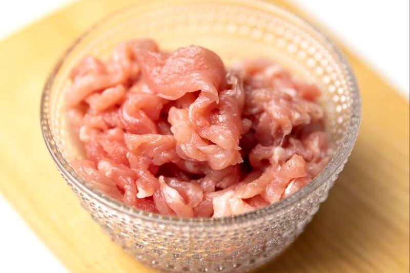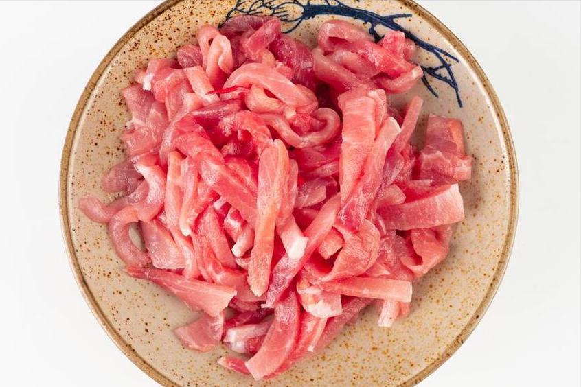 1、豬肉或者牛肉,將其放在水裏清洗乾淨,然後再切成絲狀,切絲後盛在碗裏,準備來做醃製工作。