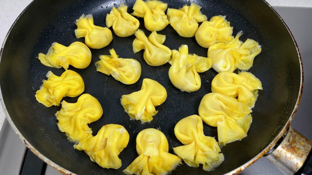 現在,我們邁入最關鍵的一步——煎蛋餃。在平底鍋中加入適量的食用油,將蛋餃放入鍋中煎至金黃。煎的過程中,香氣四溢,誘人的香味會讓人垂涎欲滴。待蛋餃兩面均勻煎至金黃,表面酥脆,內裏鮮嫩,即可取出享用。