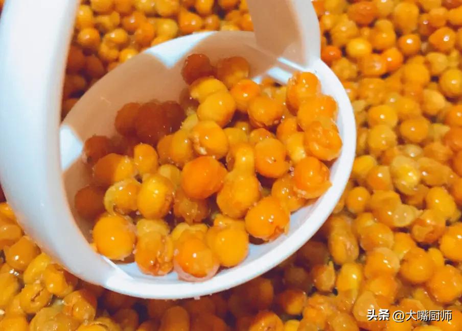 2、開小火油炸,等到豆子顏色金黃,口感酥脆後即可撈出瀝油。把炸好的豌豆放入大碗中,加入適量食鹽,用筷子翻拌均勻即可,喫起來香酥可口,特別解饞。