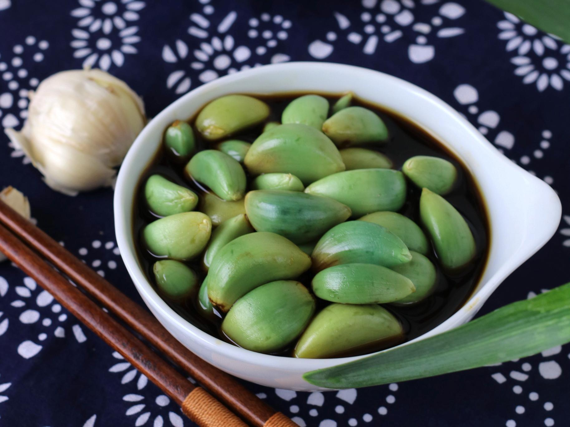 做法:紫皮大蒜剝掉外皮,放到玻璃瓶子裏,先放入細砂糖,再倒入香醋或者陳醋,把玻璃瓶擰緊蓋子,搖晃一下,放到相對暖和的地方,大約7-10天后,大蒜變得通體碧綠就可以開喫了。