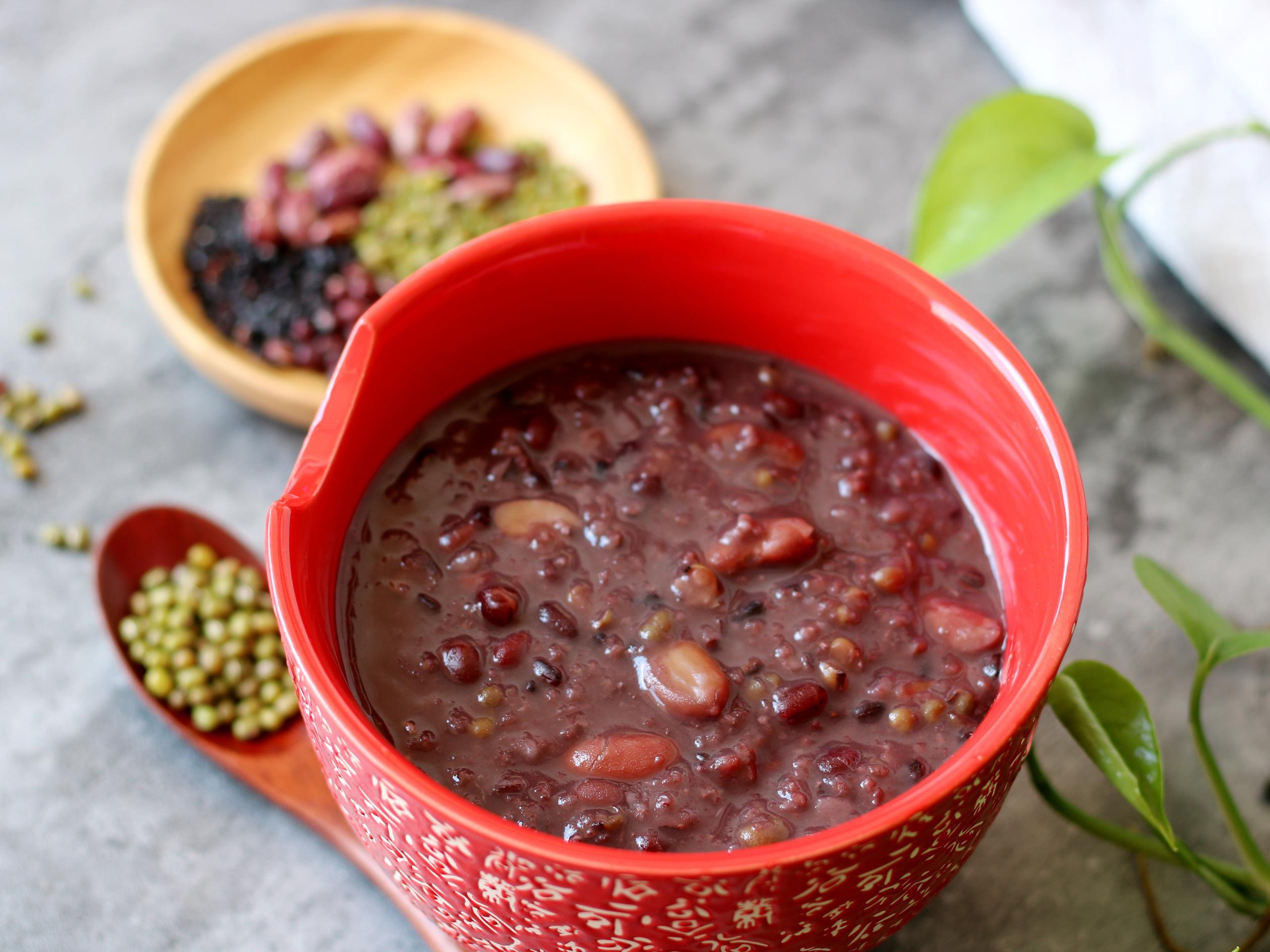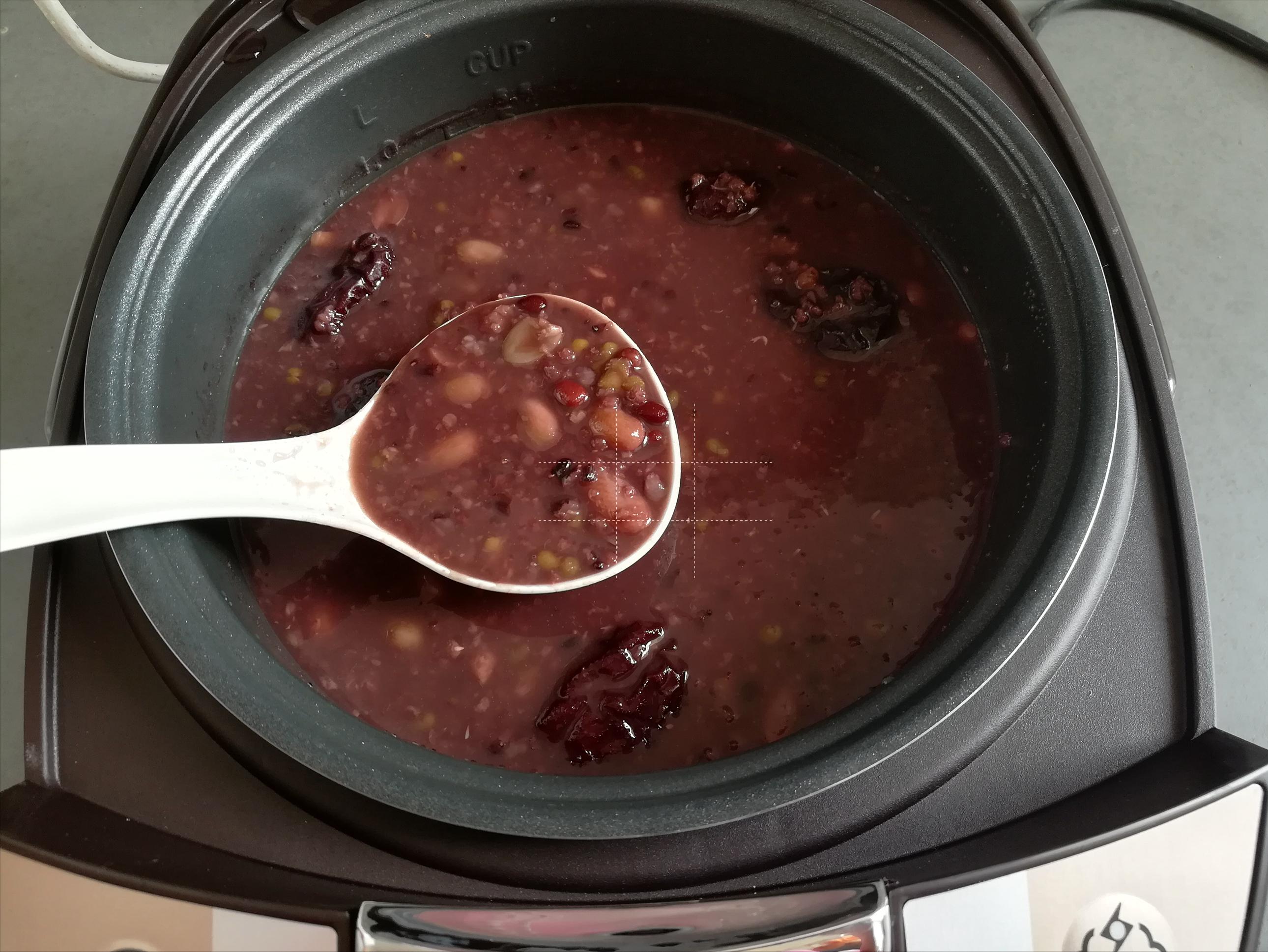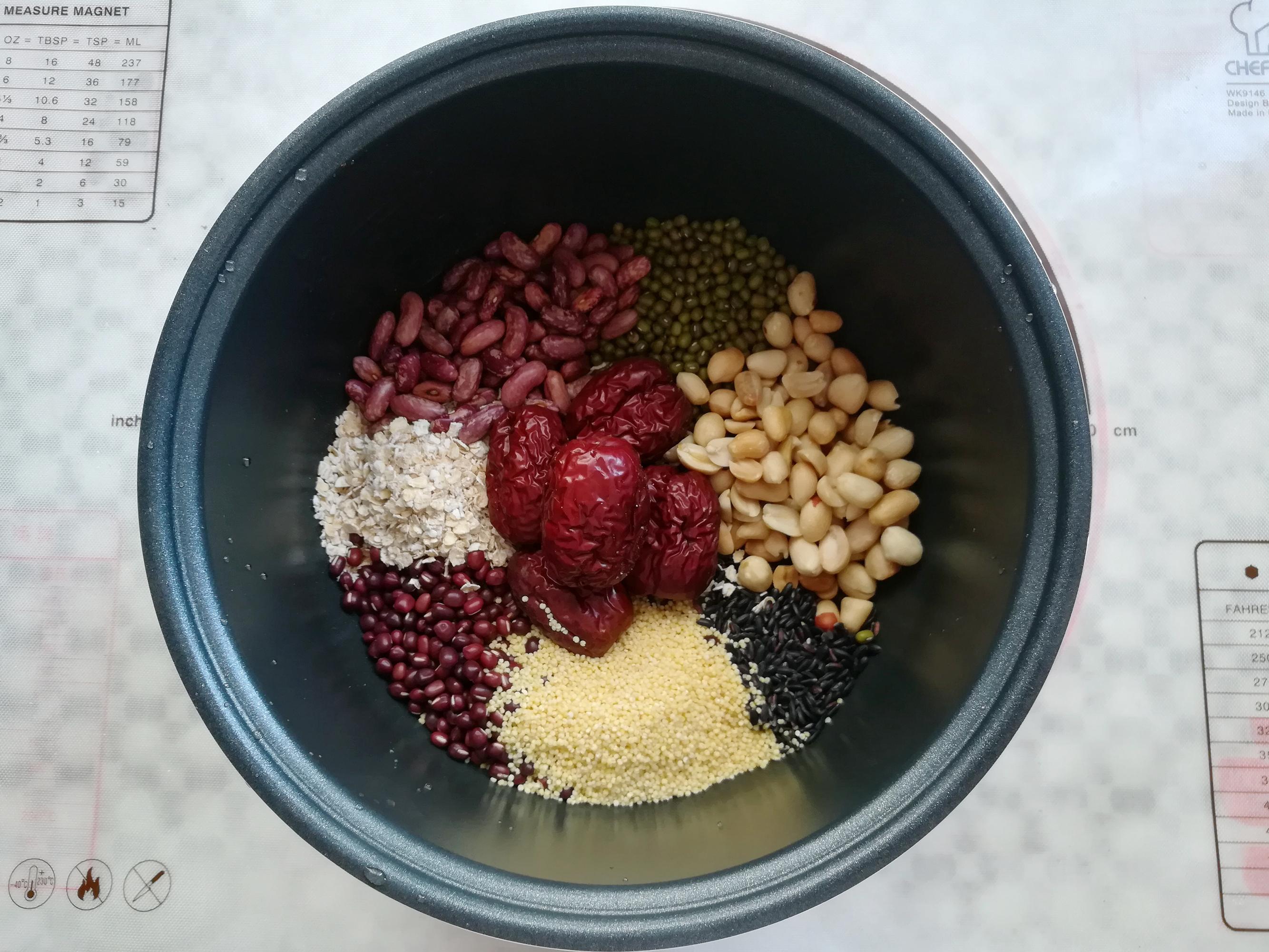 食材:黑米、紅芸豆、小米、燕麥片、赤小豆、花生、綠豆、紅棗、碎冰糖