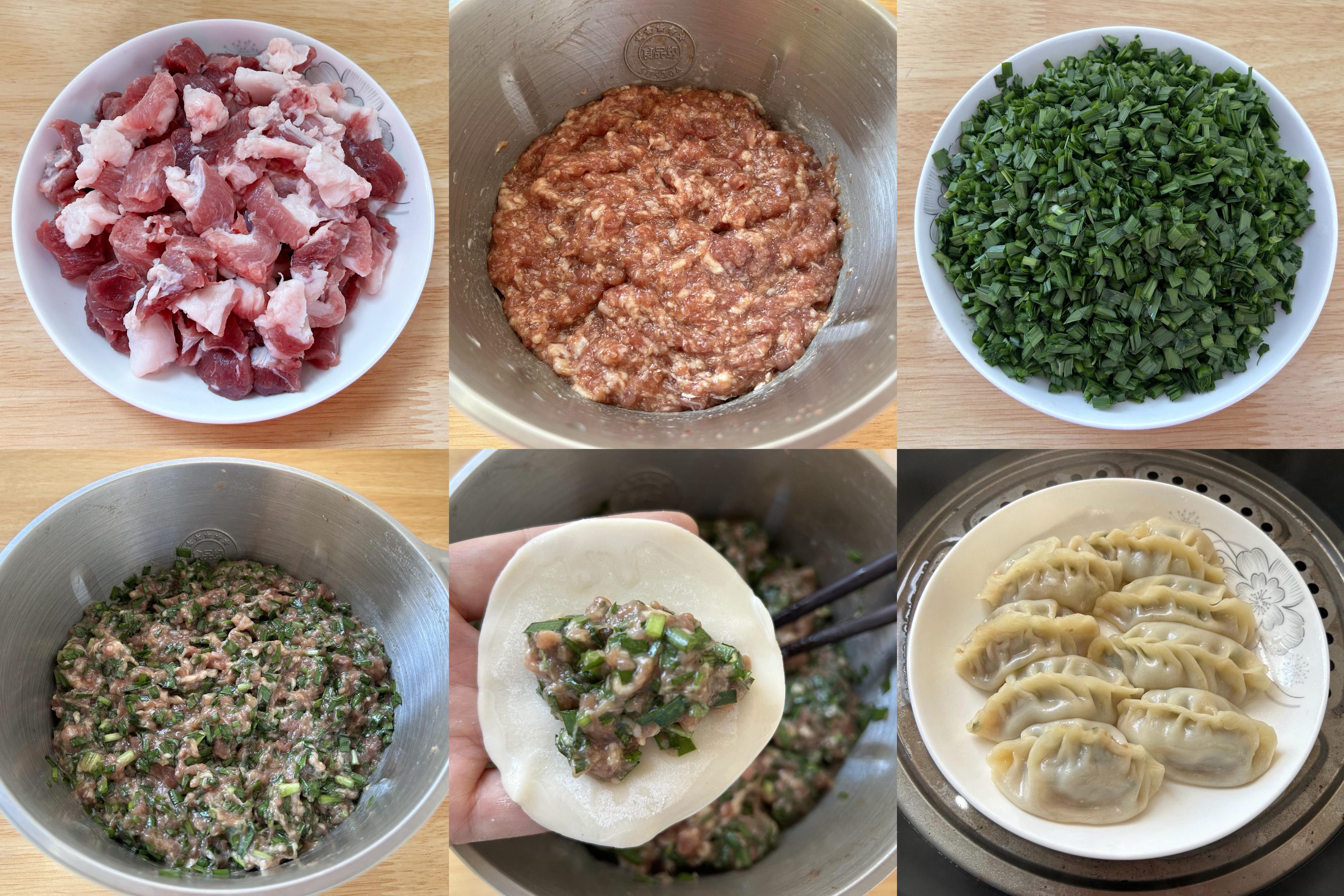 小提示:①豬肉餡加水口感會鮮嫩多汁,②調好的豬肉韭菜餡加油鎖住水分,可以避免韭菜出水。