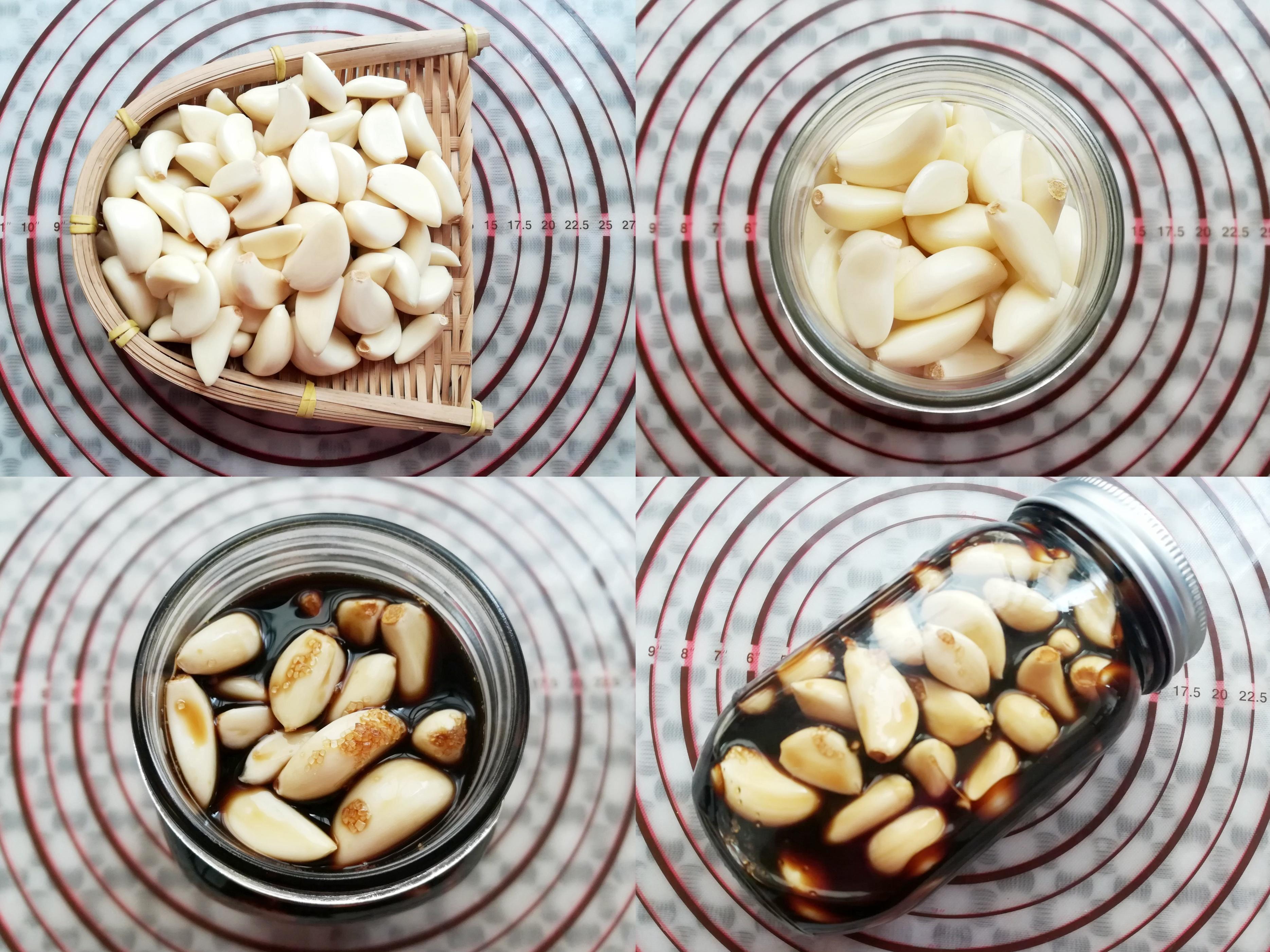 食材:紫皮大蒜 250克、香醋250克、細砂糖 50克