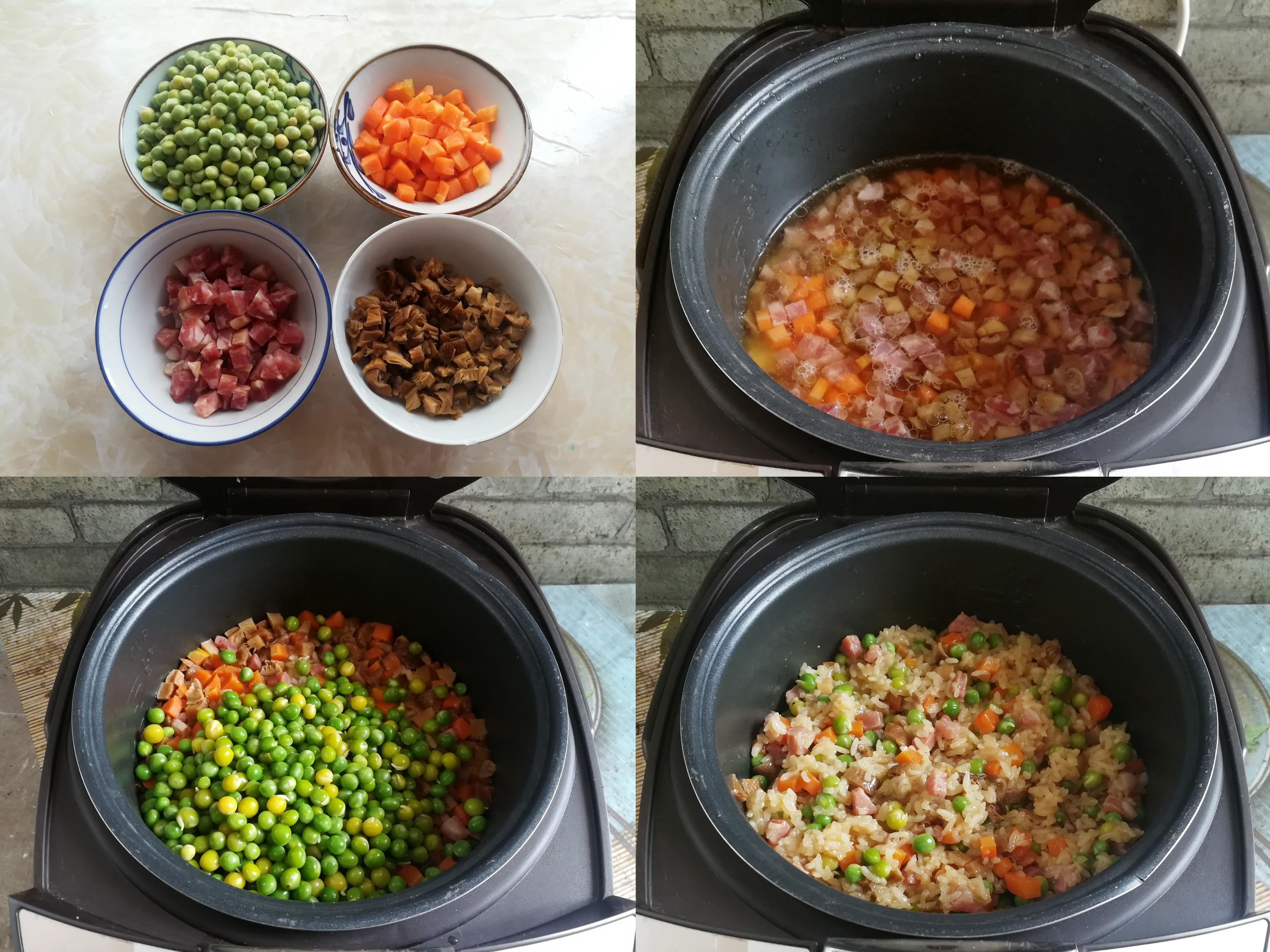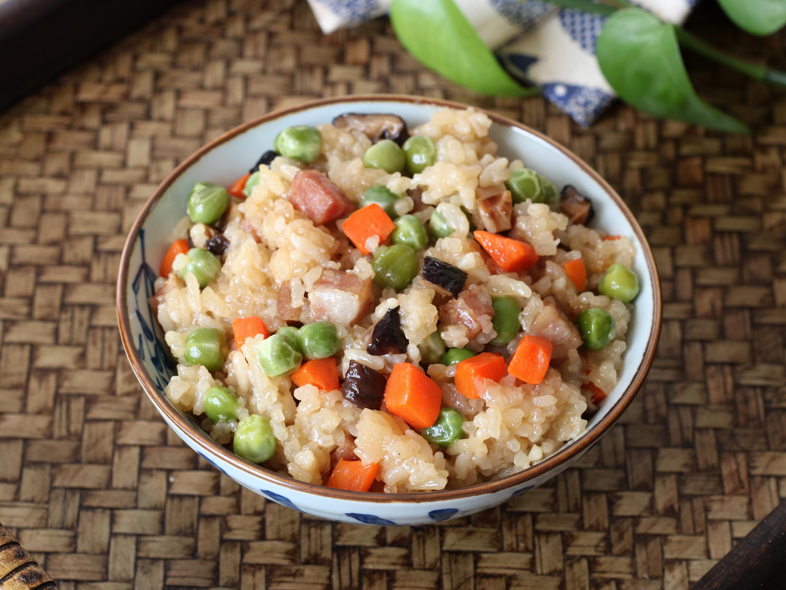 食材:大米、糯米、胡蘿蔔、豌豆、香菇、廣式臘腸、生抽