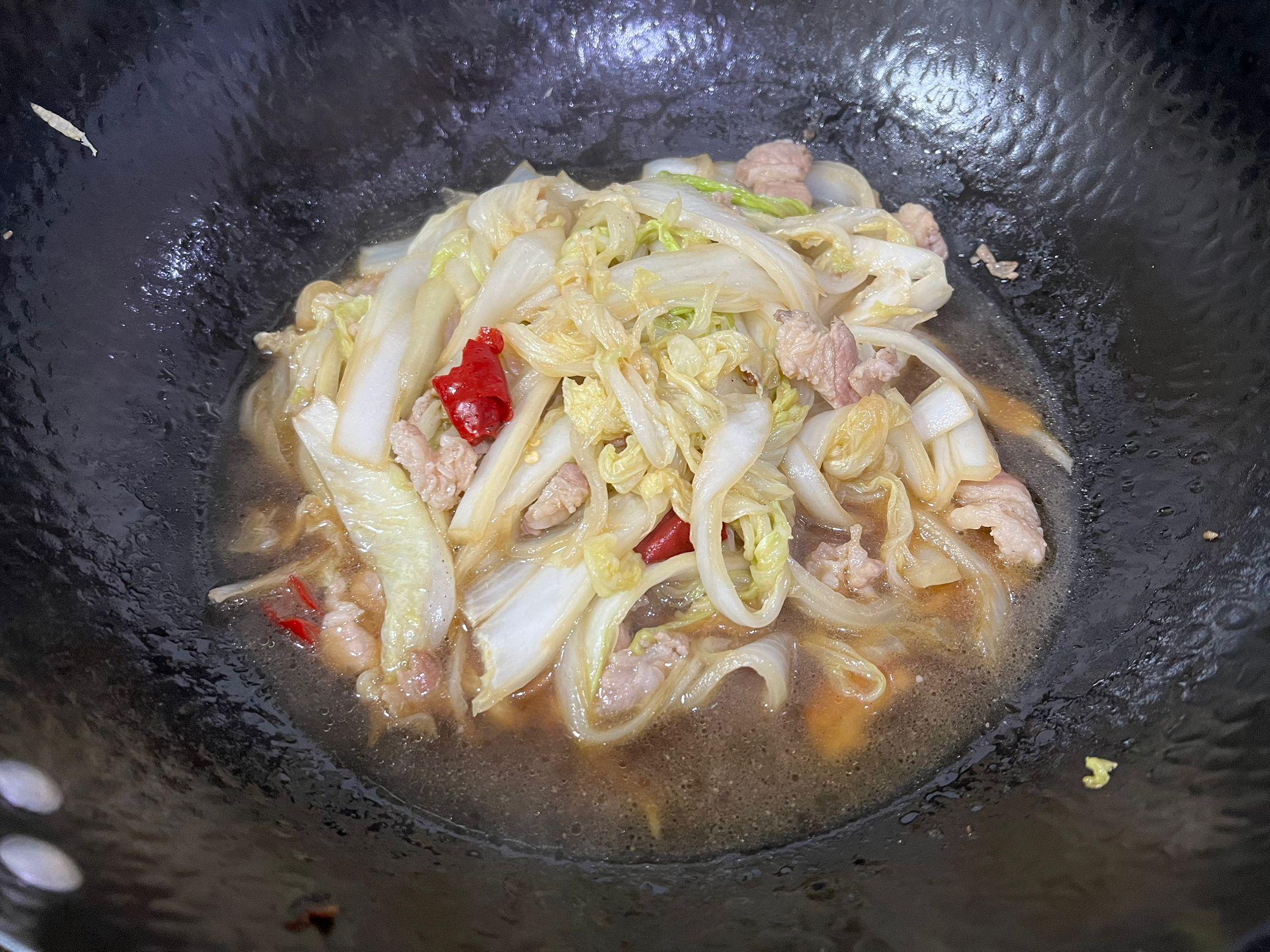 做法步驟:將大白菜洗淨,切成塊狀,使其更易於入味。肉切成細絲,生薑切成末,大蒜切成薄片備用。 油鍋加熱,放入肉絲,快速翻炒至變色,保持肉的嫩滑口感。加入薑末和蒜片,繼續翻炒至香氣四溢。將切好的大白菜塊加入鍋中,快速翻炒均勻,讓白菜塊均勻吸收肉的鮮香。加入適量生抽,調整味道,並撒入適量的鹽,翻炒均勻即可出鍋。這時,白菜依然保持一定的脆嫩口感,與肉絲的鮮香融合,營造出一道美味的菜品。