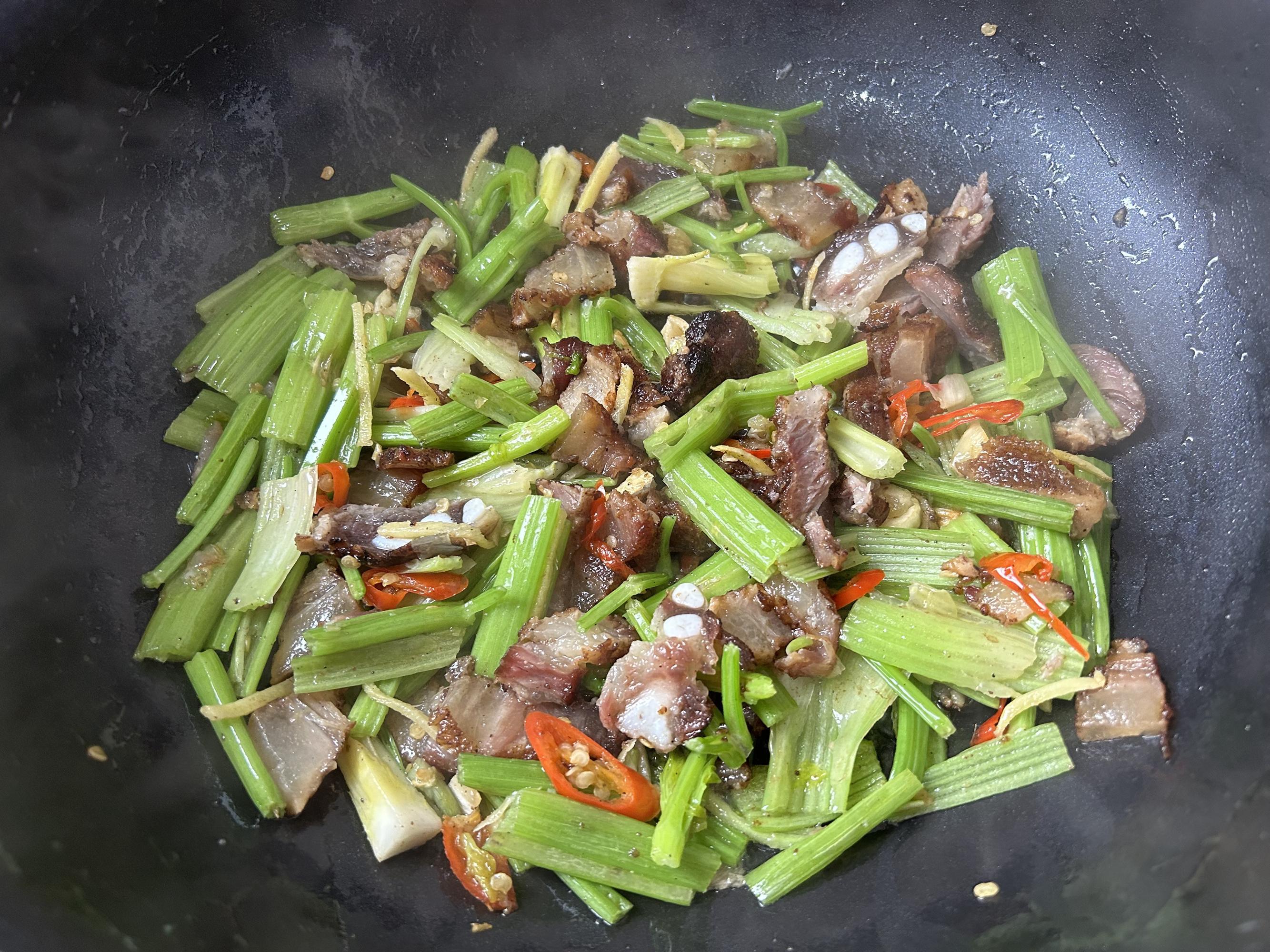 芹菜常見的做法是跟牛肉或者臘肉做家常小炒,香味濃郁,好喫又開胃。恰好家裏有剛做好的臘肉,和它是絕配,隨手一炒,下飯嘎嘎香。今天就給大家分享一下芹菜炒臘肉的做法,需要準備的食材有:芹菜 一大棵,臘肉 適量,大蒜 5瓣,生薑 1塊,小米椒 3個,食用油 適量,鹽 適量。