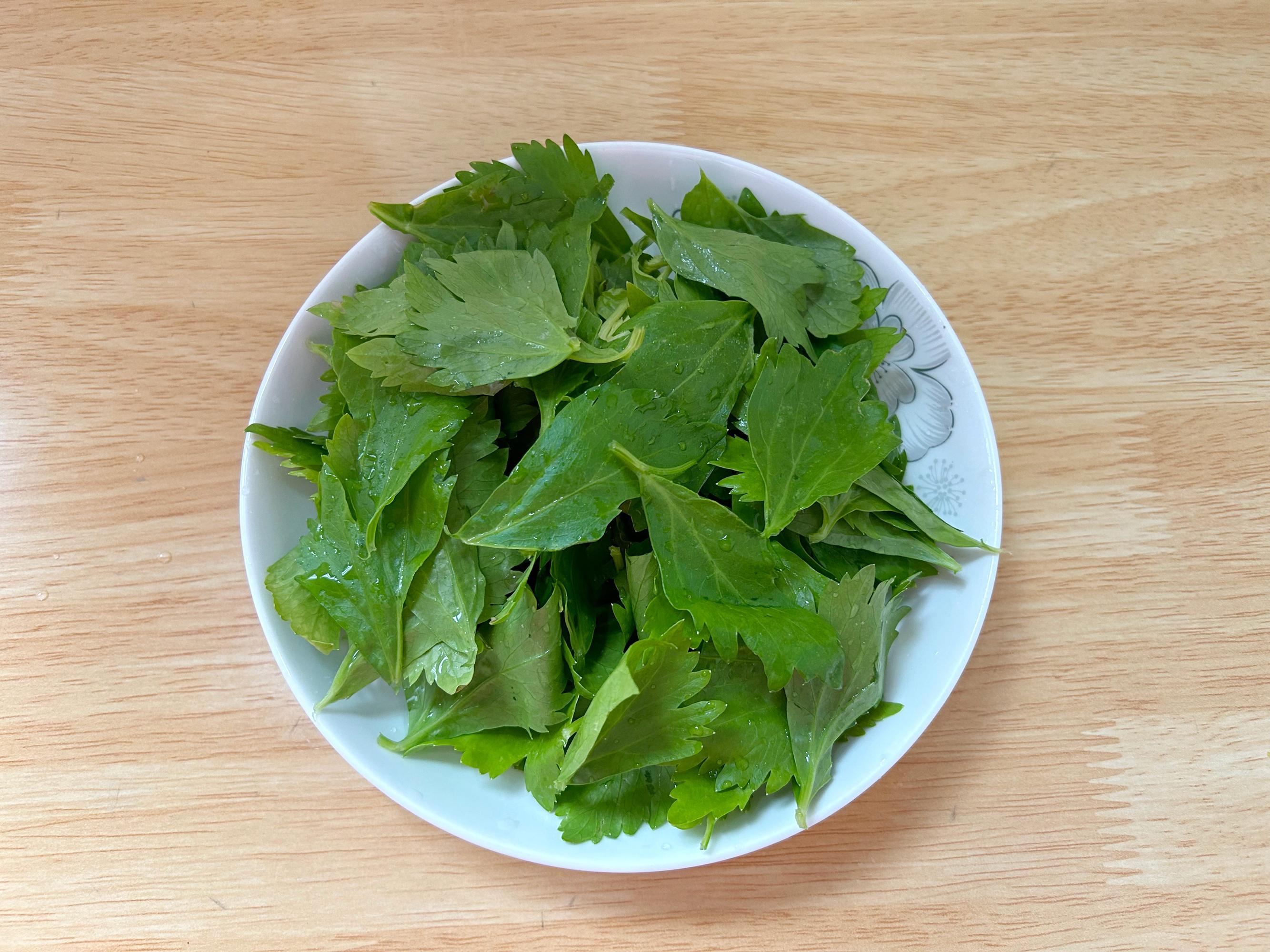 芹菜的葉子營養也很高,嫩葉摘下來清洗乾淨。很多人不知道,芹菜的葉子也有降脂降壓的好處,而把它扔了真是太可惜了。