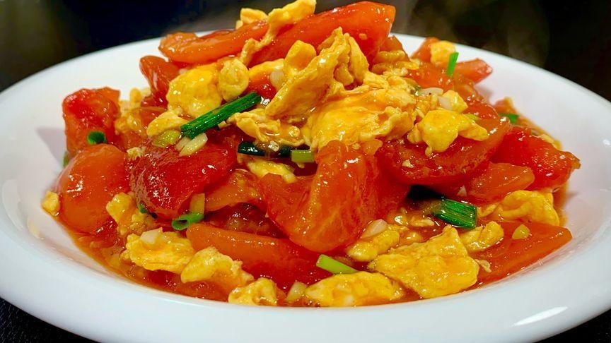 2、油溫燒至六成熱後。倒入雞蛋液翻炒幾下即可盛出。倒入蔥花,翻炒出香味,加入番茄炒出汁,開始調味。加入食鹽,白糖,鯽魚、番茄入味,然後加入炒好的雞蛋,翻炒均勻即可出鍋裝盤。