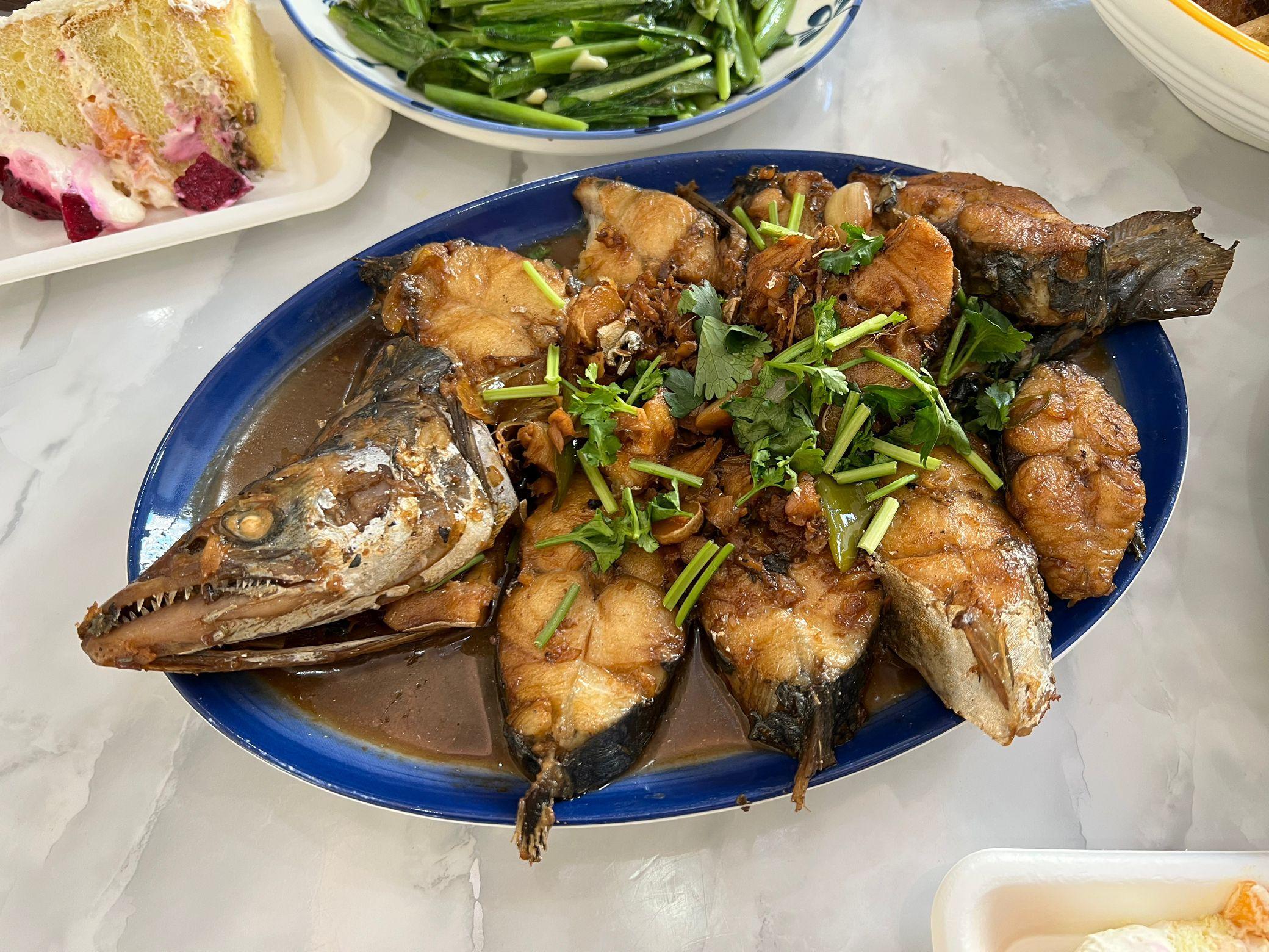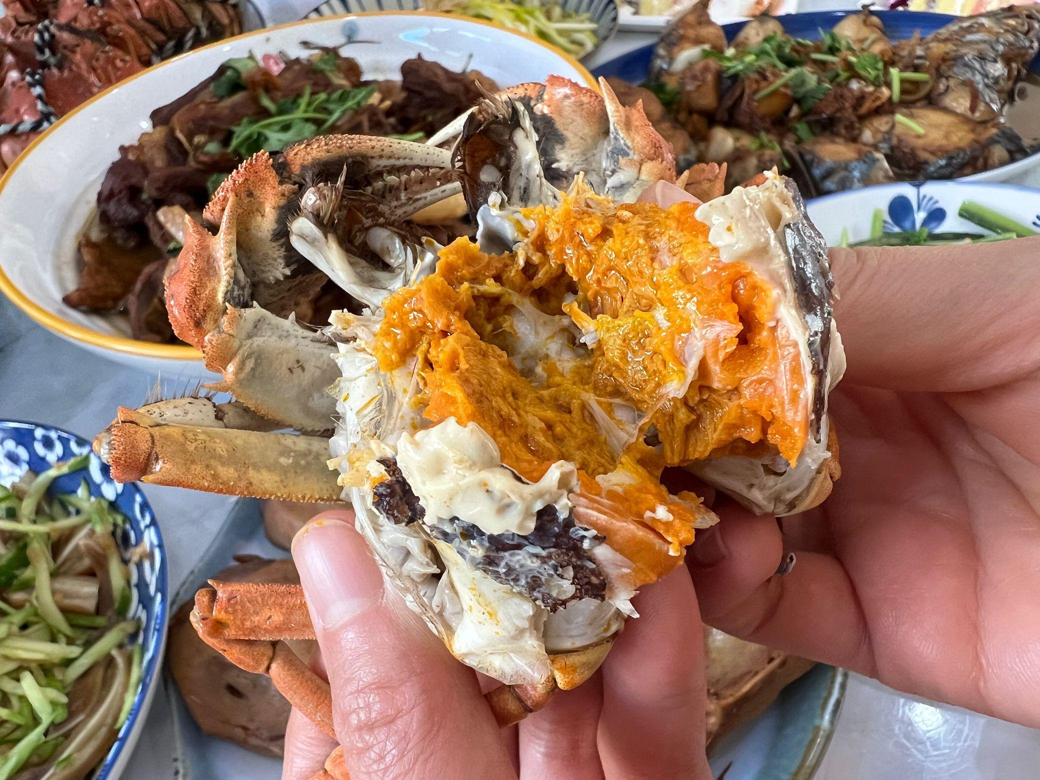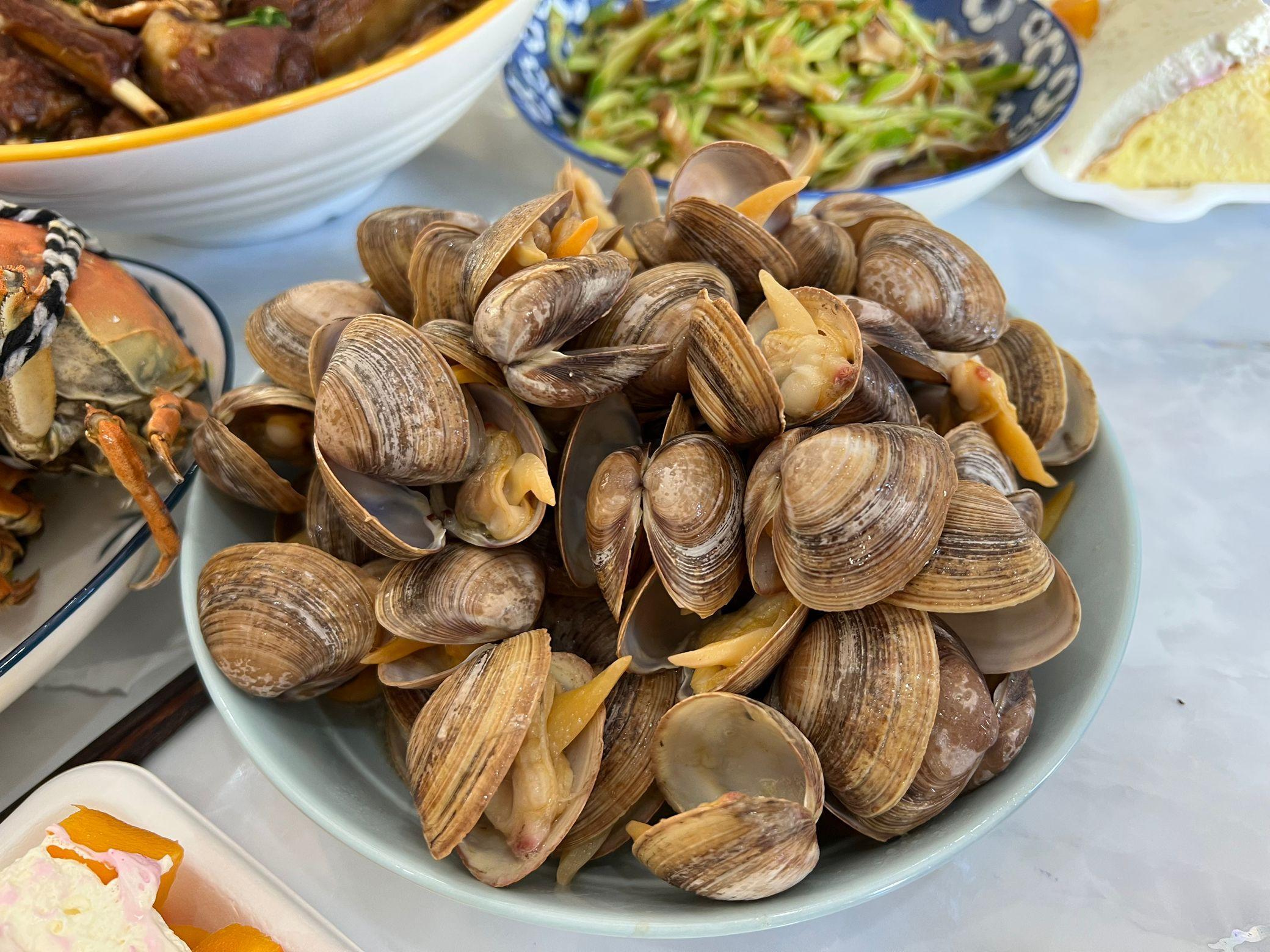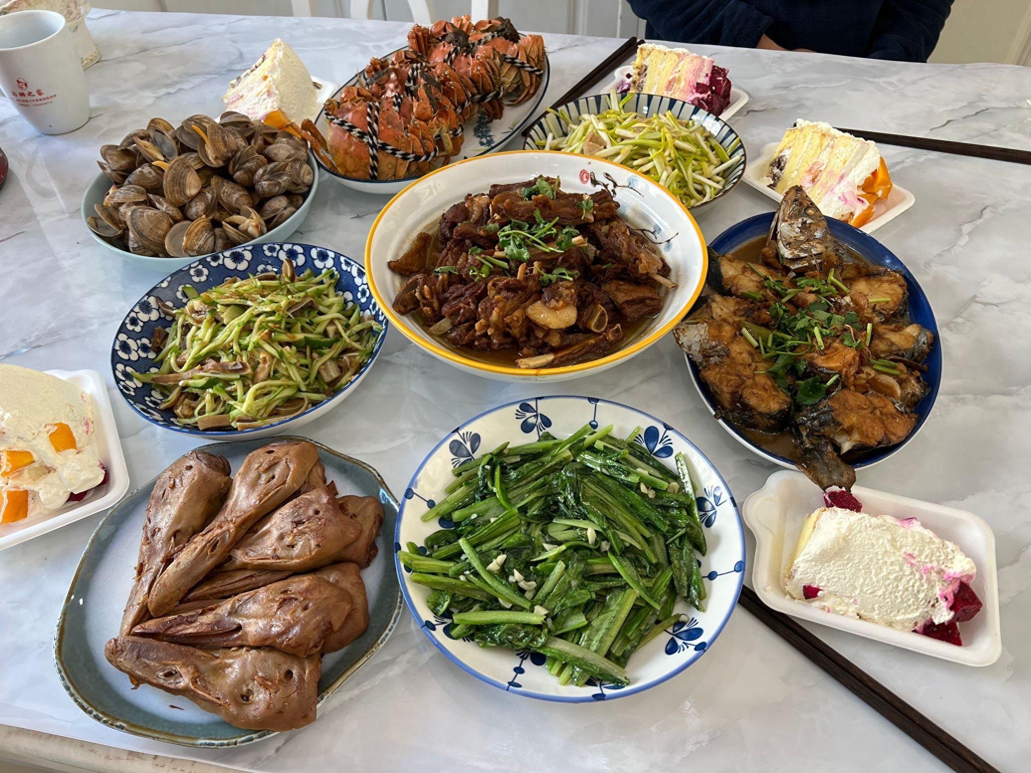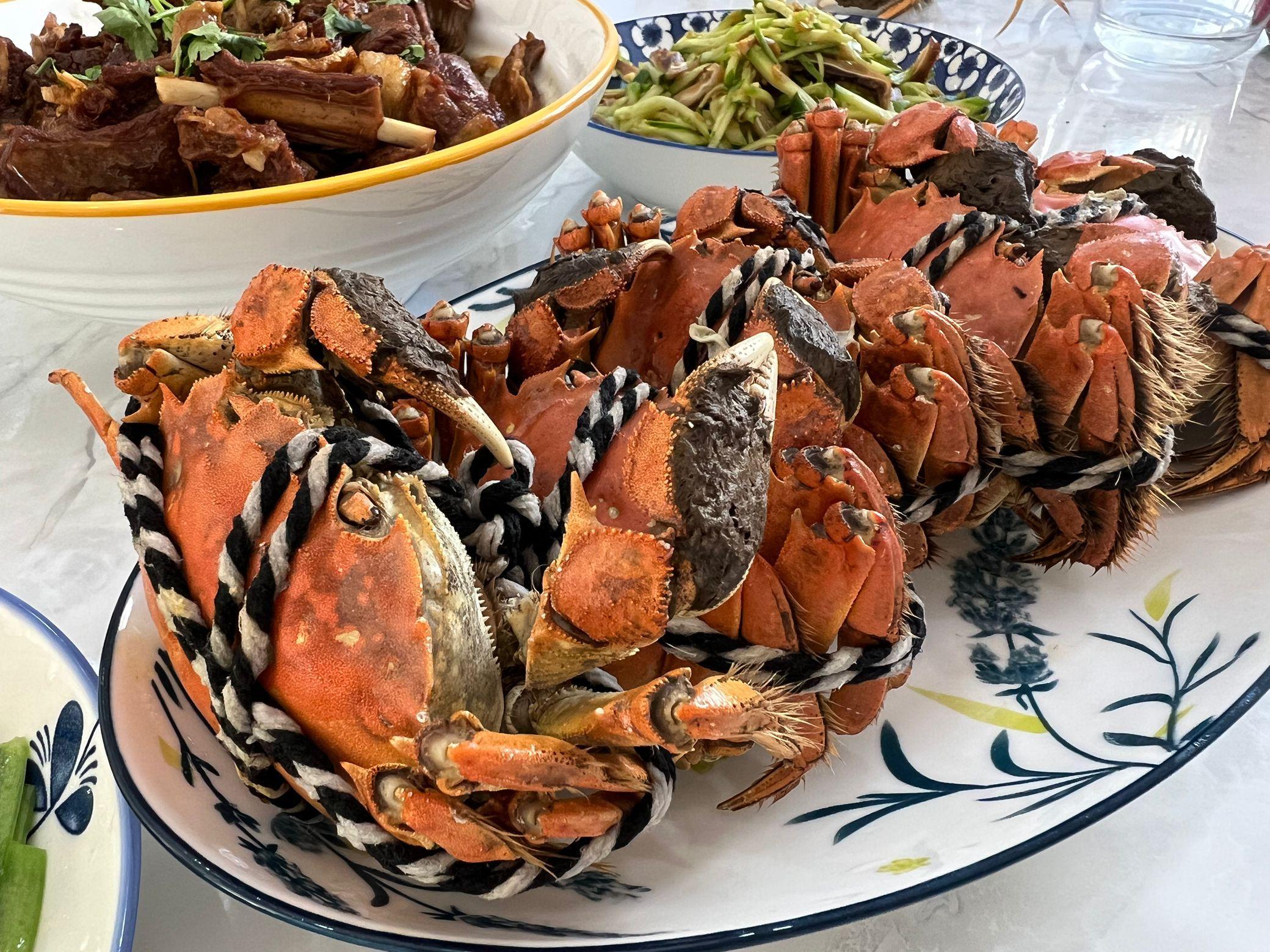 晚餐的菜餚豐富多樣,第一道大菜是清蒸大閘蟹,這個季節大閘蟹45元一個,對於普通家庭來說也算挺貴了,烹飪大閘蟹的方法千變萬化,蒸、煮、炸、燉,各具特色。最經典的喫法莫過於清蒸大閘蟹,輕輕一蒸,保持了蟹肉的原汁原味,同時又不失鮮嫩。大快朵頤時,每一口都帶着濃郁的海鮮甘甜,滿足了味蕾的享受。