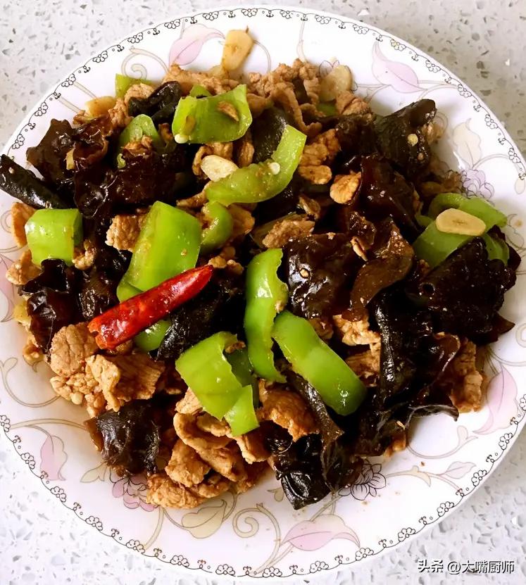 準備瘦肉、黑木耳、蔥、姜、蒜、幹辣椒、食鹽、料酒、生抽、蠔油、食用油、胡椒粉。