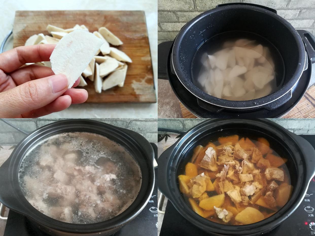 3.排骨用砂鍋燉20分鐘,再加入葛根煮5分鐘,加適量的鹽調味。
