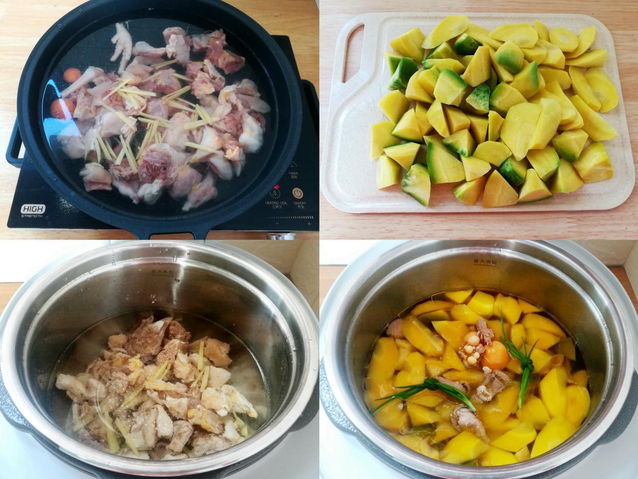 食材:黃胡蘿蔔 2根、土雞 半隻、生薑、香蔥、料酒、鹽