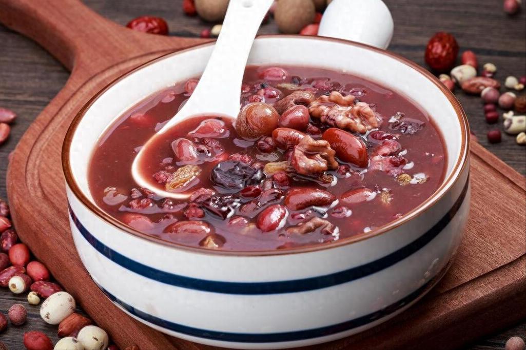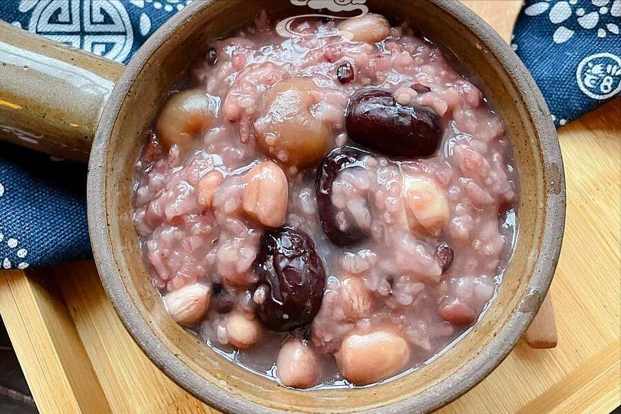 食材:紅豆、黑豆、綠豆、薏米、蓮子、糯米、黑米、大米、桂圓、紅棗、花生、冰糖