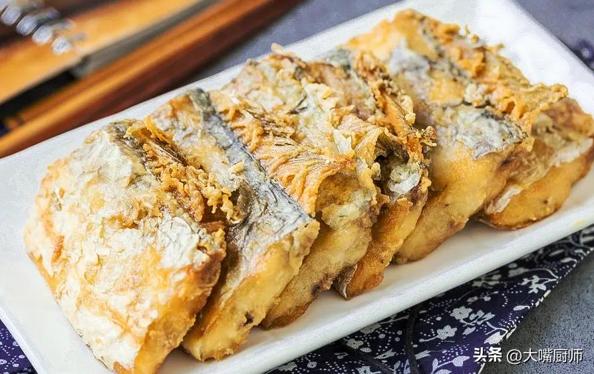 1、帶魚剪掉魚鰭,剁掉魚頭和魚尾,去掉內臟,撕掉魚肚子裏的黑膜,洗乾淨後切成小段,放入盆中備用。大蔥、生薑切末,放入帶魚段中,加入料酒、白胡椒粉、食鹽,用手翻拌均勻,醃製半個小時。