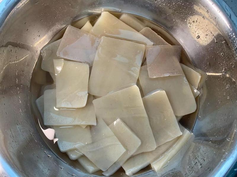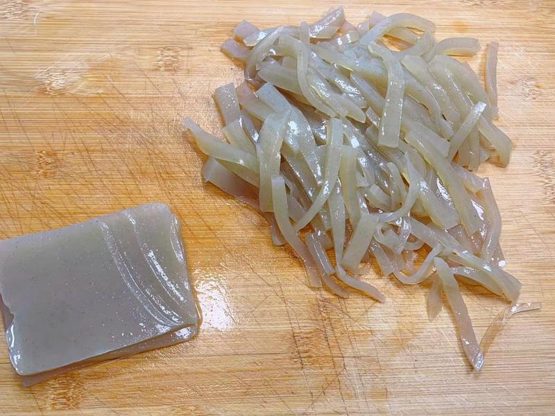 1、去市場或者是網購10斤新鮮的魔芋豆腐,因爲它在製作過程中會放一些小蘇打,因此買回來的魔芋豆腐要浸泡一下。把魔芋豆腐切成大概3釐米厚的薄片,用清水浸泡20分鐘左右,去除裏面的異味。泡好以後把魔芋豆腐切成長條,粗細儘量均勻。