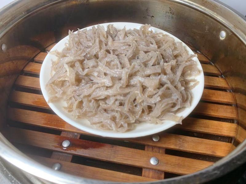 具體做法:1、取適量的魔芋幹提前泡10分鐘,然後再洗乾淨,攥幹水分,放入盤內,在鍋中蒸15分鐘。