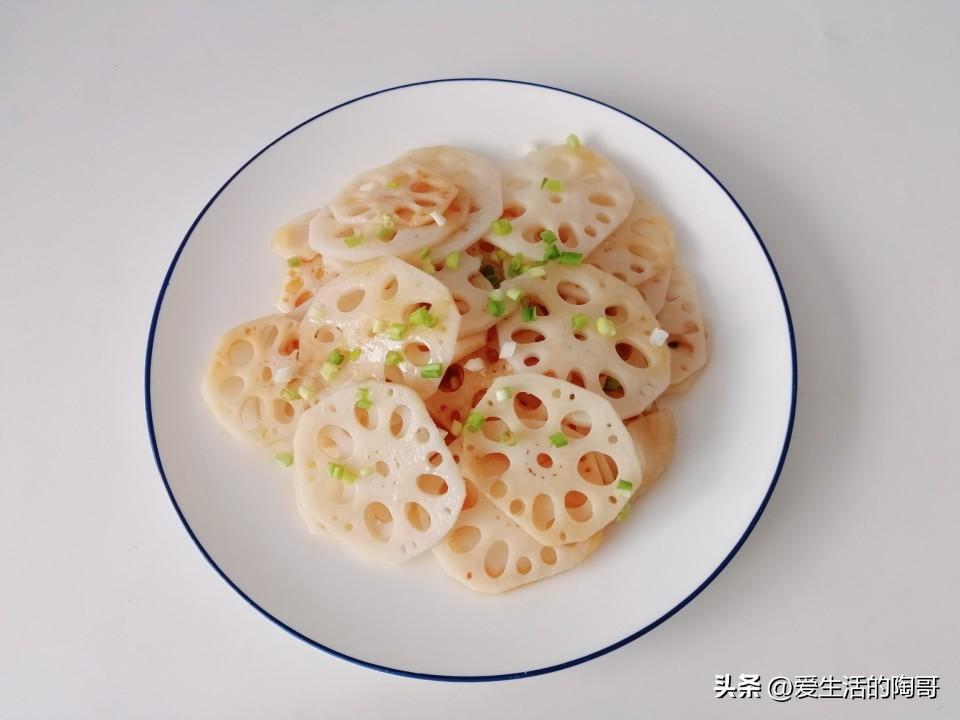 4加入藕片,翻炒均勻,起鍋前,加入鹽, 醋,一點白糖,味極鮮,翻炒均勻即可。