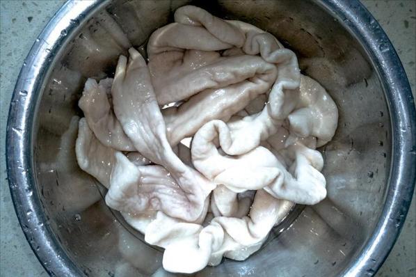 如果豬大腸沒有清洗到位,那換成廚藝再好的廚師,也無濟於事。清洗豬大腸,只用清水絕對是不可以的,臭味、腥味很重,那又有人用鹽、用鹼,實際上也不對。