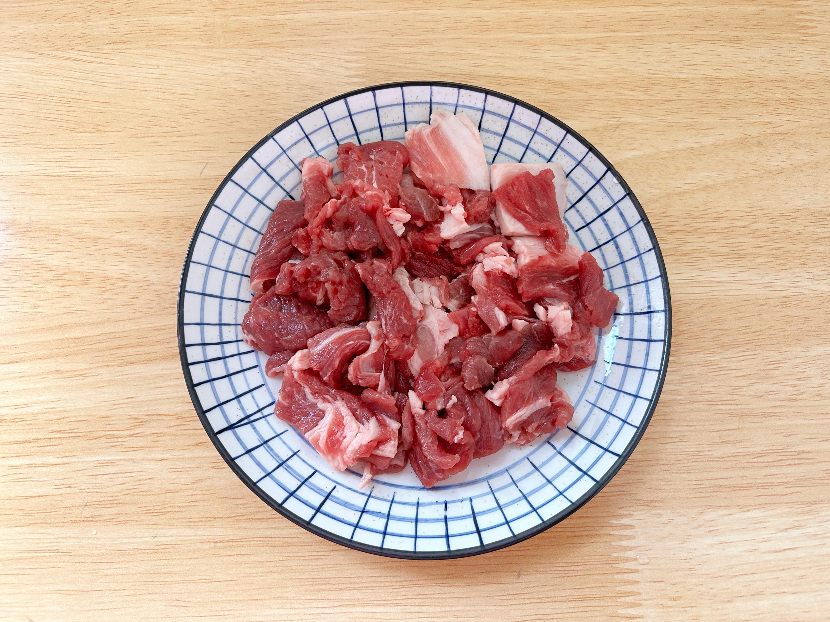 表哥告訴我,羊肉剛切的時候看似柔軟,直接下鍋煮就會很硬。想要醃出好喫的羊肉,醃肉的時候要牢記“3放2不放”,不僅需要用料酒、白胡椒粉去羶味,還要加一些不起眼的調味品,讓羊肉片充分吸收水分,這樣纔有鮮嫩的口感。因此飯店裏醃製好的羊肉,纔會賣得那麼貴。