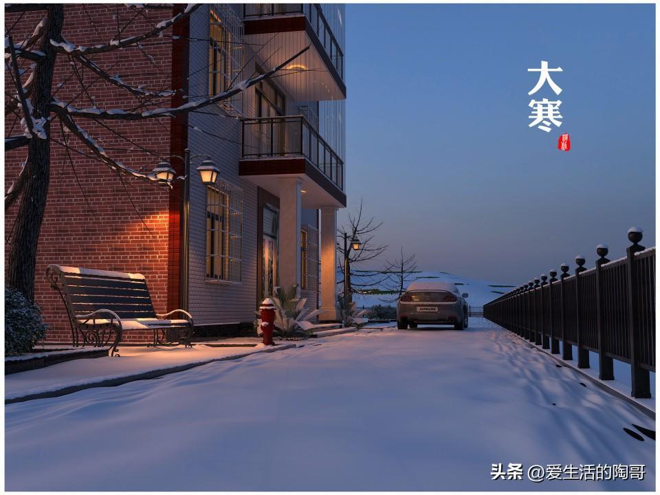 最後還要提醒一點,大寒時節,氣溫低,雪霜大,做好防寒措施,注意保暖。路面光滑,中老年人羣一定要注意外出安全,注意防滑,防止摔跤。好好的愛護自己的身體,健康快樂,迎接新年的到來。
