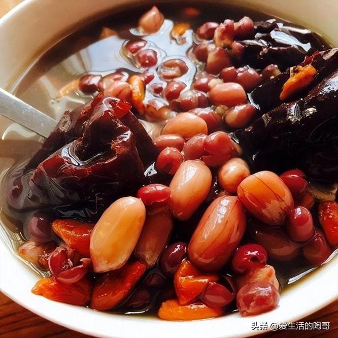 食材:紅豆、紅棗、紅皮花生、紅枸杞,紅薯,紅糖