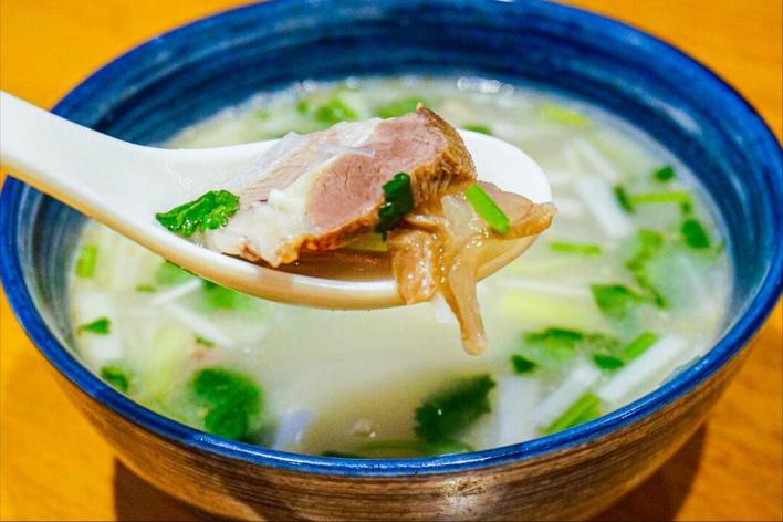 6、燉好後的羊肉,來點鹽、白胡椒粉調味就行,至於其他的什麼五香粉、雞精這一類,都是不需要放的。加進去以後,稍微攪拌一下,就可以喝了。