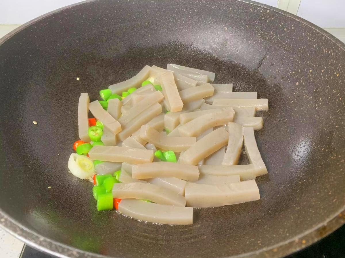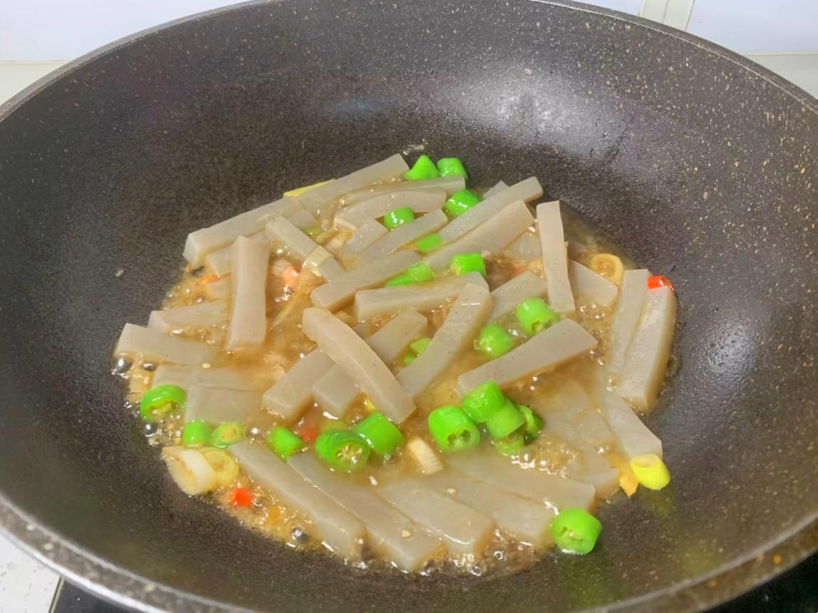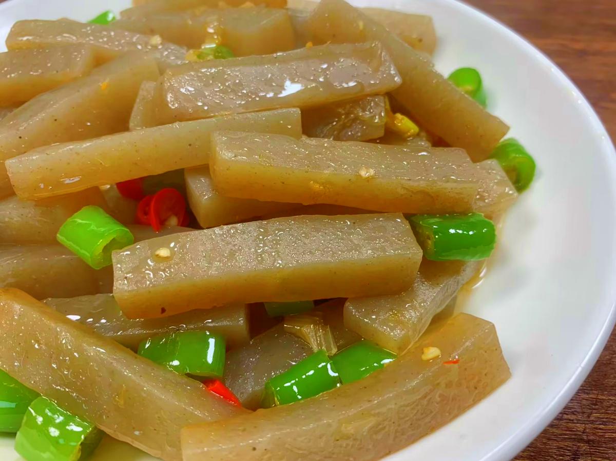 腸道堵塞是一種常見的消化系統疾病,會造成發熱、脫水、面色蒼白、嘔吐等,一定要及時的改善治療。而魔芋是人們公認的“腸道清道夫”,它是一種低熱量、低脂肪、高纖維的食物,食用價值極高,它是一種薯芋農作物,含有豐富的葡萄糖、果膠、蛋白質、鈣、磷、硒等營養物質,這些營養物質能夠幫助排毒通便、降三高以及美容養顏,所以女性朋友要常喫。魔芋北方朋友喫的比較少,超市有賣袋裝的,可以清蒸、涼拌、辣炒,下面小編和大家分享一款超下飯的做法,一起來看看是怎麼做的吧!
