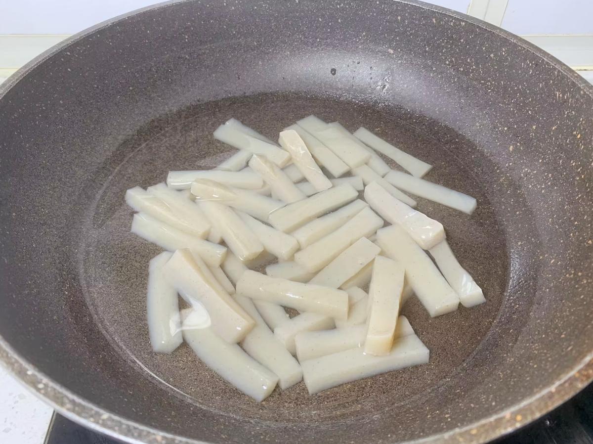 2、切魔芋豆腐要切的厚一點,燜時間長一些,口感更軟糯入味,超好喫。