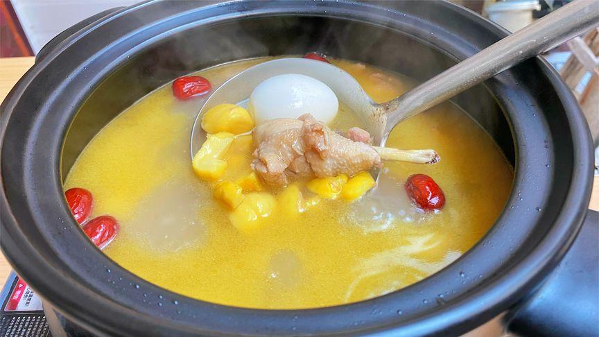 2、時間到了,撒上一點枸杞,最後放點鹽,板栗土雞湯就做好了。