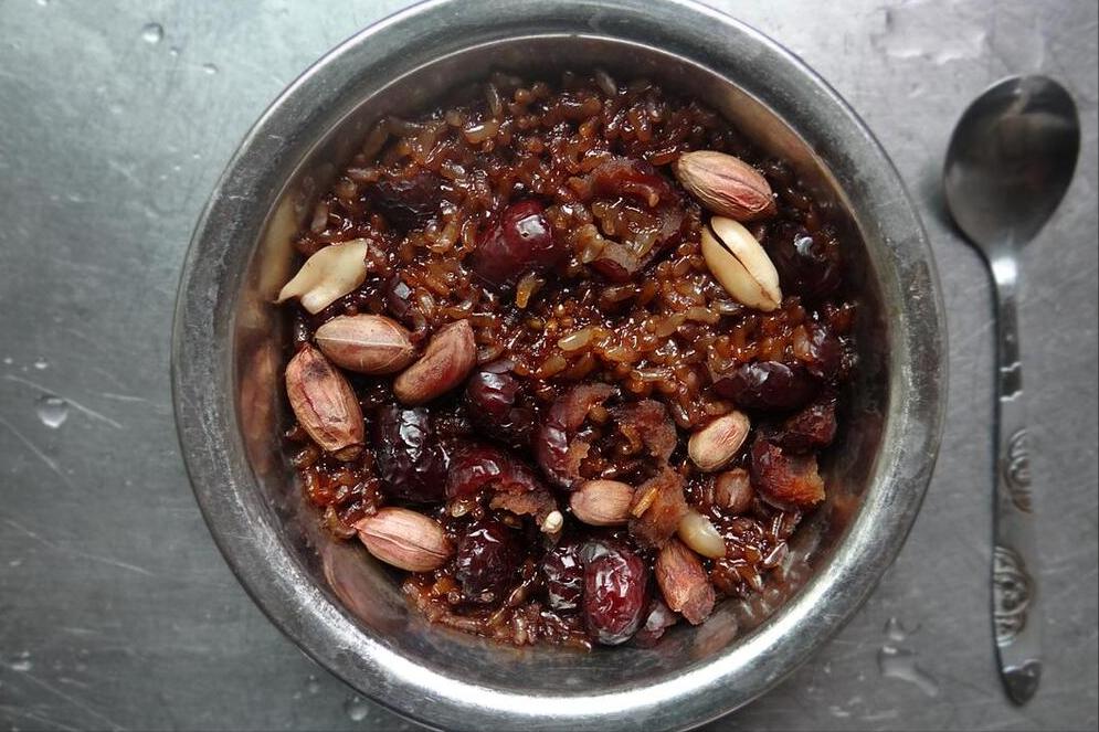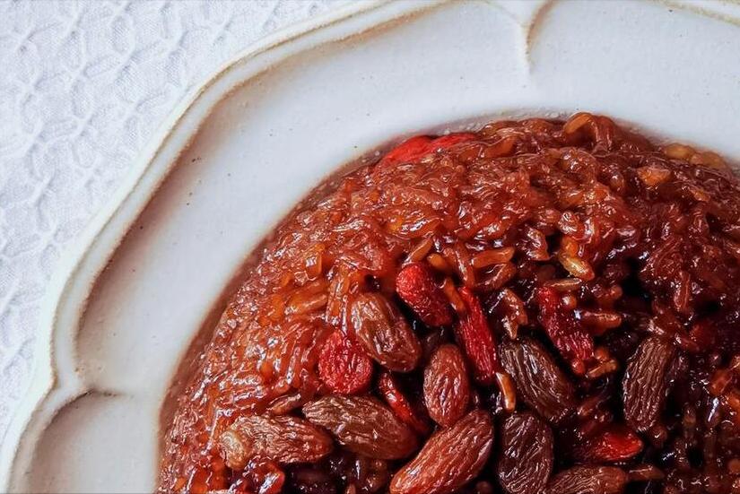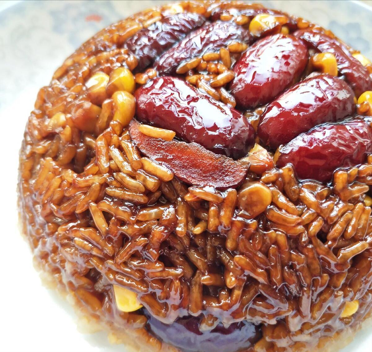 用料:糯米、紅糖、紅棗、葡萄乾、枸杞