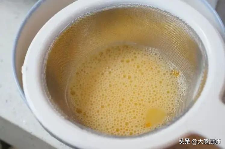 3、雞蛋液要過濾一下,去除氣泡,就會很光滑。