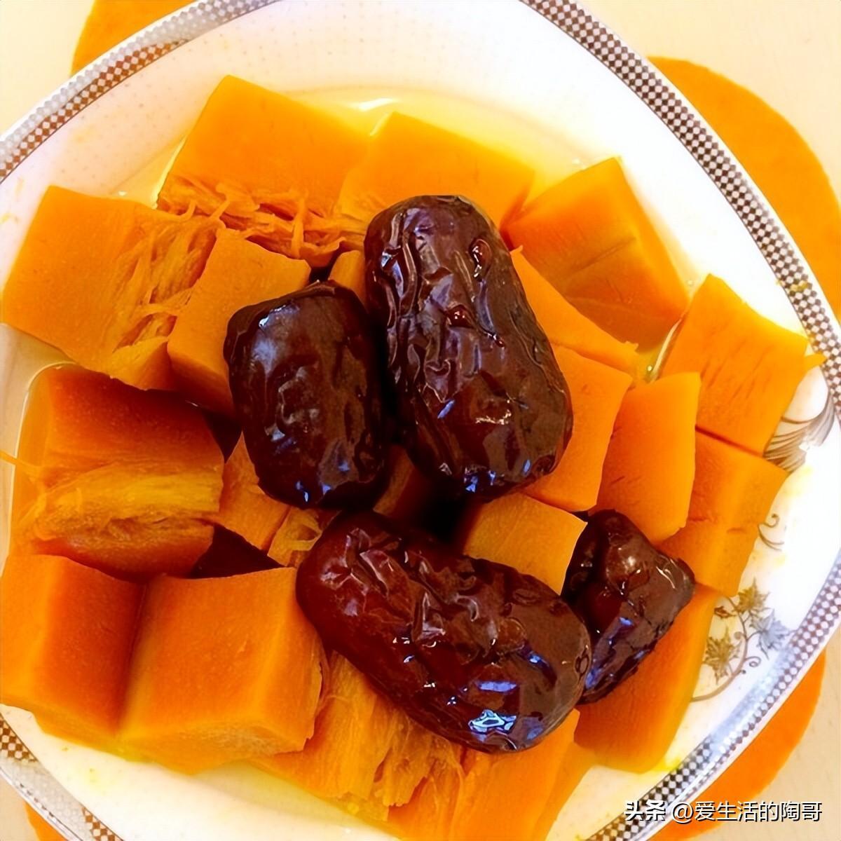 推薦喫法,清蒸南瓜。把南瓜與大棗,葡萄乾一起清蒸來喫,營養流失的少,味道更加美味。紅棗中含有豐富的糖分和維生素,有着非常強的美容功效,能夠幫助肌膚對抗衰老,女人們常喫紅棗,肌膚會變得格外白裏透紅、細膩有彈性。