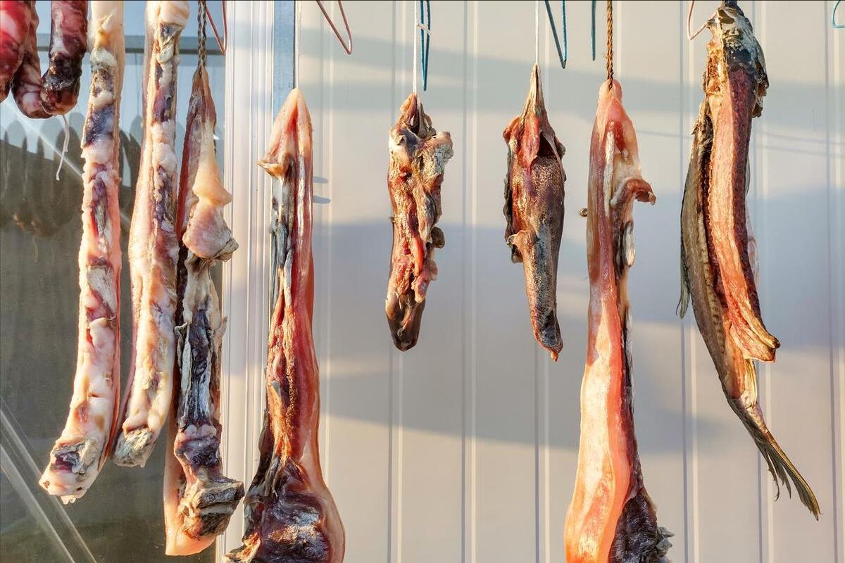 2、買來以後,還是稍微清洗一下,洗乾淨了之後,把水分控一下,放在室外攤平晾曬,把水分充分晾乾。很多人不是擔心,豬肉蘸了生水容易壞嗎,那麼晾乾以後,我們可以在上面,淋上適量的高度白酒。