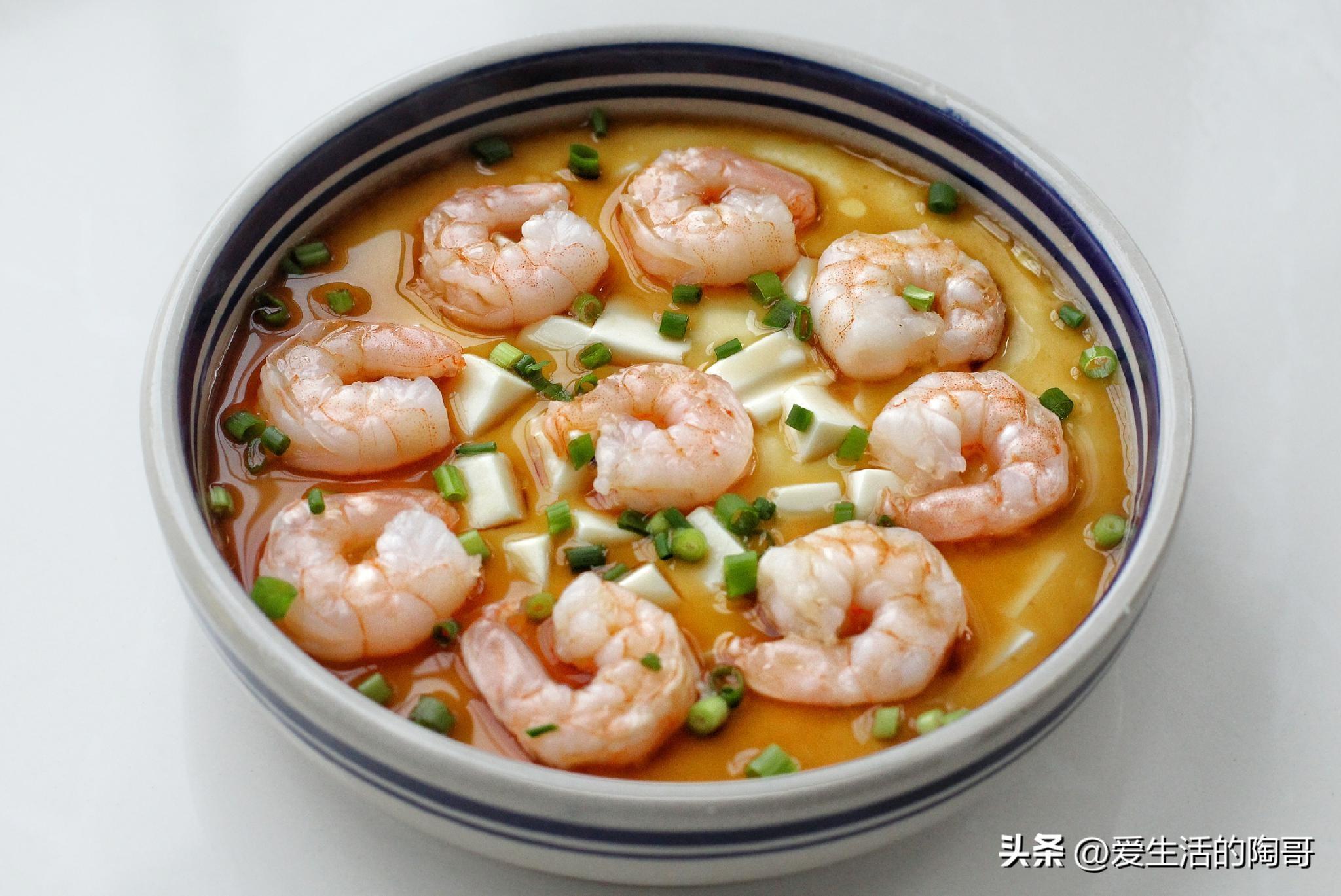 食材:蝦仁,嫩豆腐1塊,雞蛋2個,蔥,鹽, 香油,味極鮮