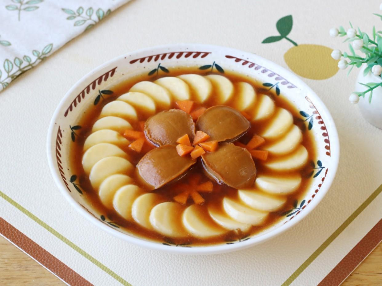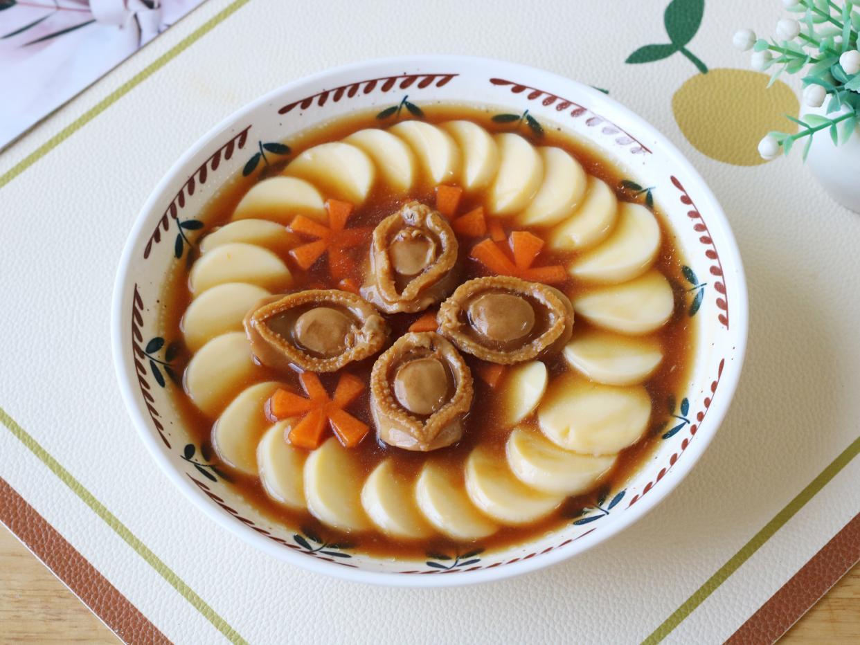 隨着春節的臨近,各種過年要用到的東西都囤了不少,孩子愛喫的炸雞塊、老人愛喫的午餐肉等等,每樣都買了好幾份。除此以外,還買了一些過年做菜用的半成品,剛收到鮑魚罐頭,我家先生就讓我研究一些創意菜。正好家裏冰箱裏還有幾根玉子豆腐,那就來個寓意財運的“暴富”吧,上鍋簡單一蒸,就是一道營養美味的吉祥菜。