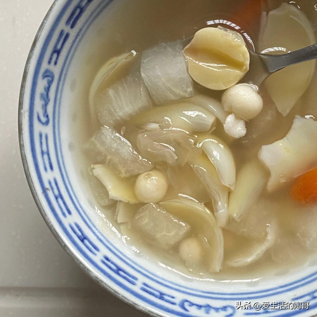 杏仁搭配白果肉片一起煮湯喝,可以補益肺氣、化痰止咳、理氣健脾,適合一家大小老喝,是冬季裏一道養人滋補湯。