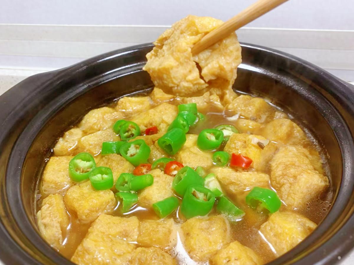 具體做法:1、油豆腐放入水中浸泡5分鐘,沖洗幾遍,然後用廚房剪刀在油豆腐上剪一個小口,這樣烹飪的時候能夠更好地吸滿湯汁。再準備適量平菇、香菇,清洗乾淨,攥幹水分。接下來切一些蔥姜、細青椒都放入盤內備用。做燉菜儘量用砂鍋,會讓食材更入味更好喫。砂鍋中倒入少許食用油,油熱先放入蔥姜炒香,再把平菇、香菇放進去,大火不停翻炒,炒出水分。