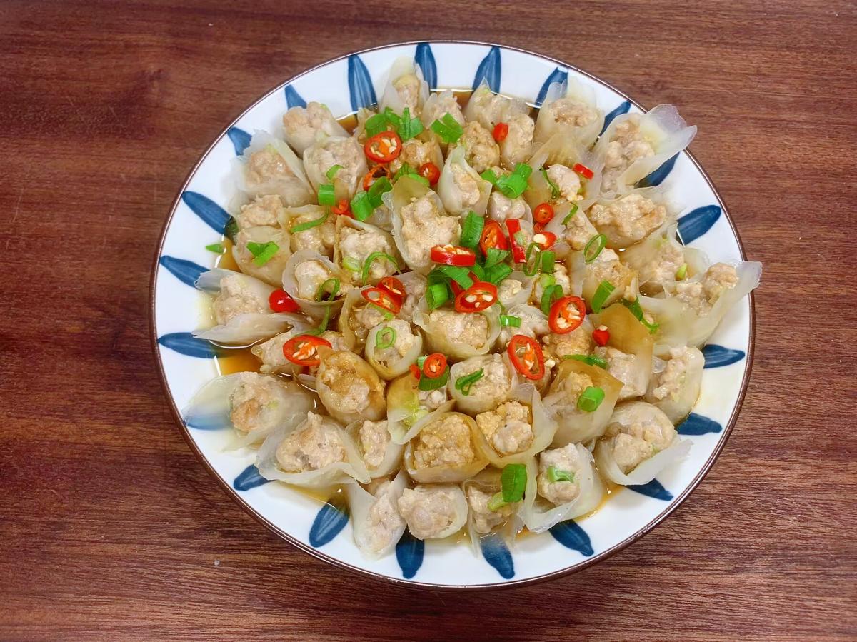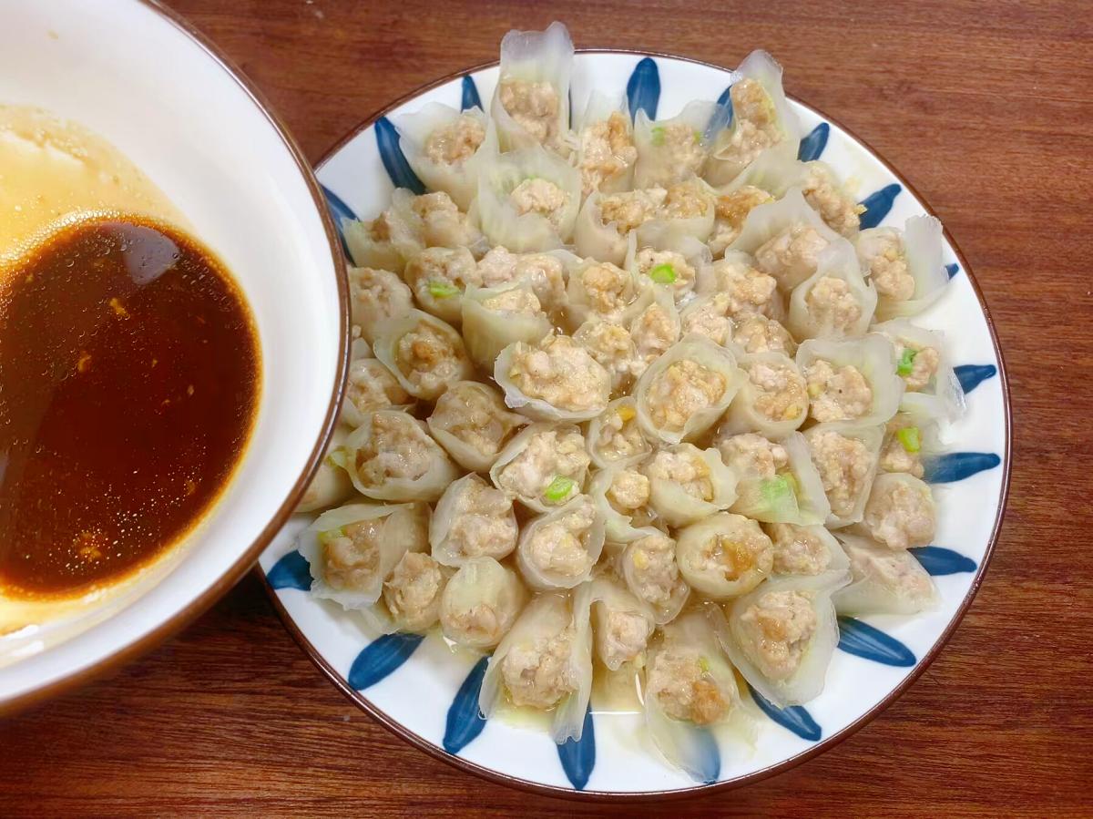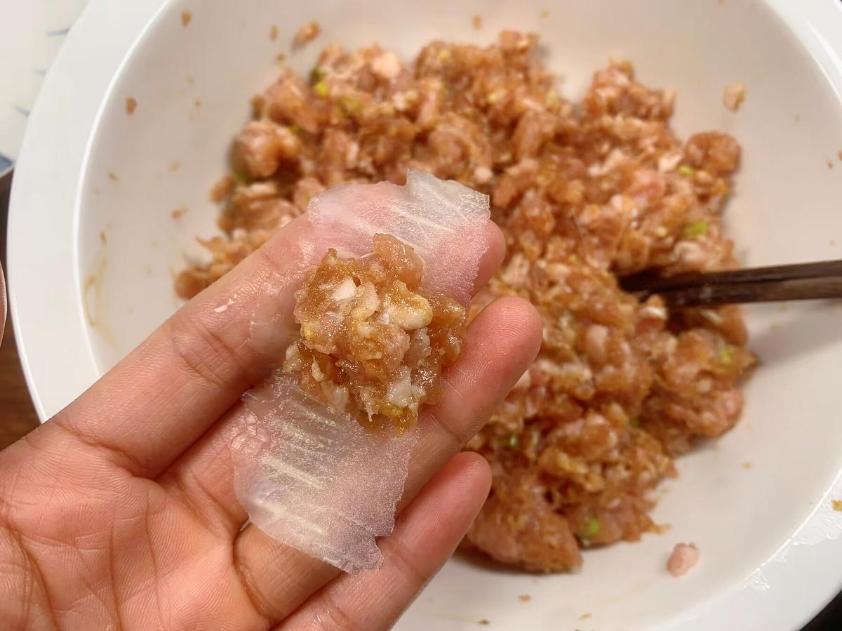 2、肉餡要選擇瘦一點的豬肉,攪拌軟一點,蒸熟後口感更好。