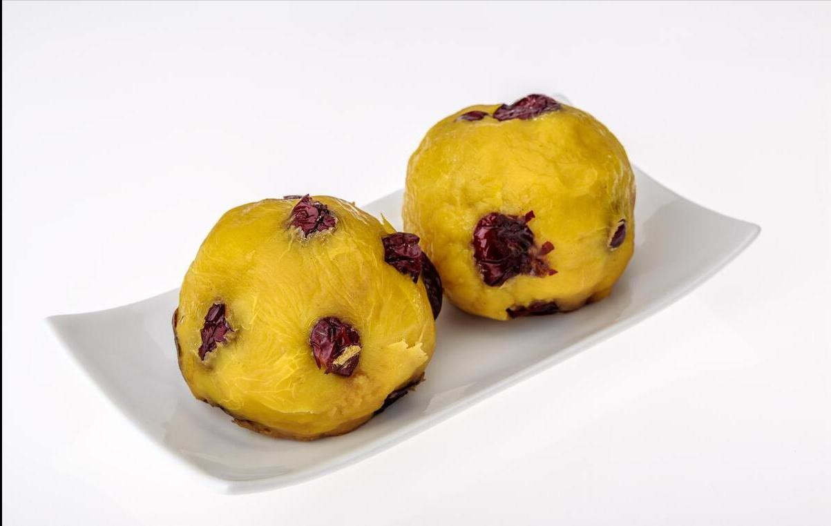北方的傳統小喫,用黃大米磨成面,加紅棗揉成團後蒸熟的糕點,有年年高升的美好寓意。圓圓的粘糕,象徵着團圓,金燦燦的外觀,還象徵着財富。