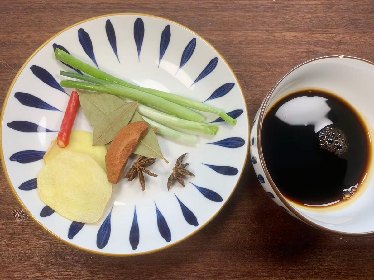 【涼拌牛肉】 所準備的食材有:牛腱子肉、小米椒、八角、香葉、桂皮、香蔥、生薑、大蒜、甜麪醬、生抽、老抽、蠔油、鹽、料酒、香菜